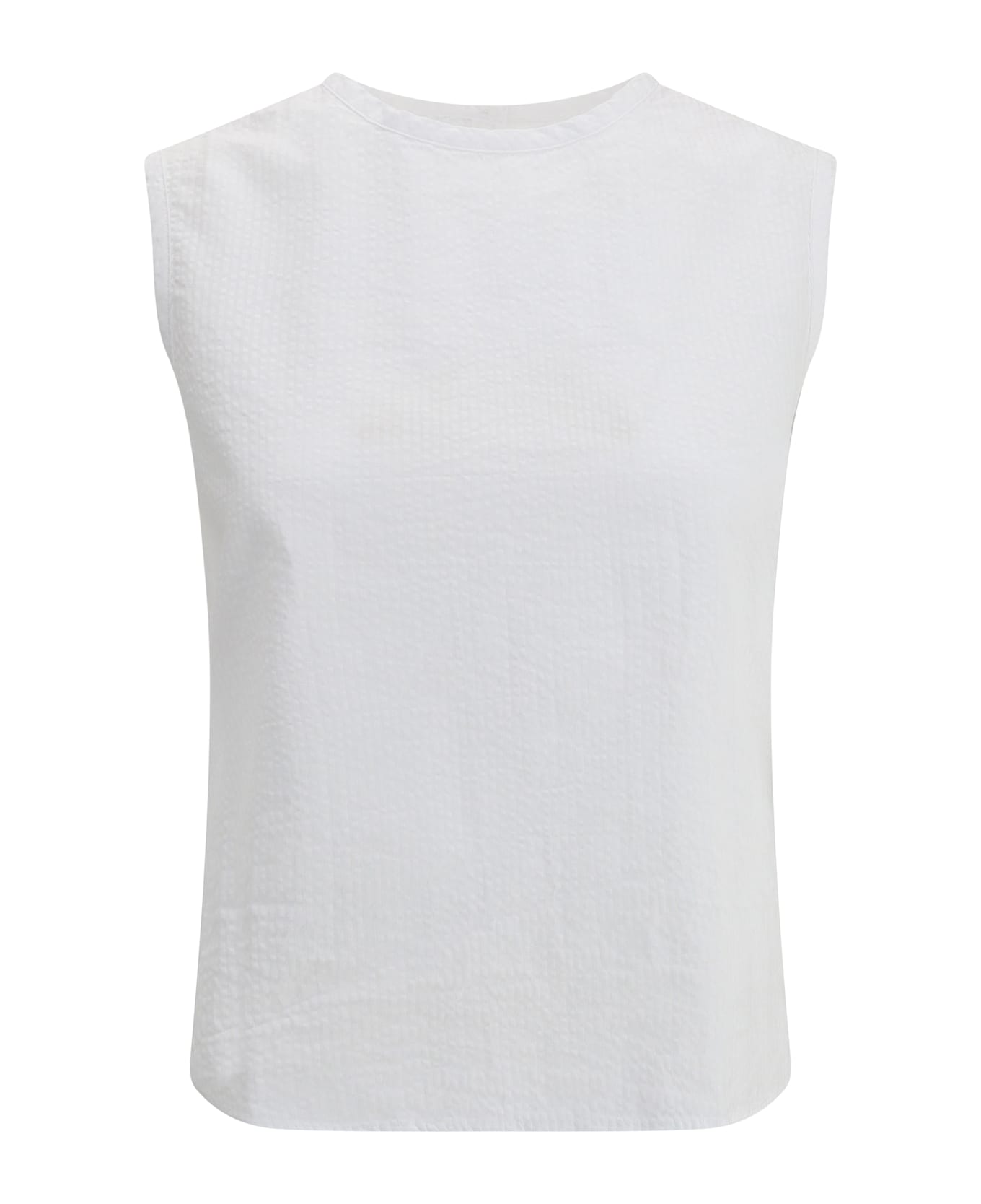 Deperlù's cotton top is a cool and versatile garment perfect for the summer season. with a crew neck and sleeveless pattern, it offers a comfortable and lightweight fit. the back button closure adds a touch of understated elegance, while the striped print gives a dynamic and stylish look.
