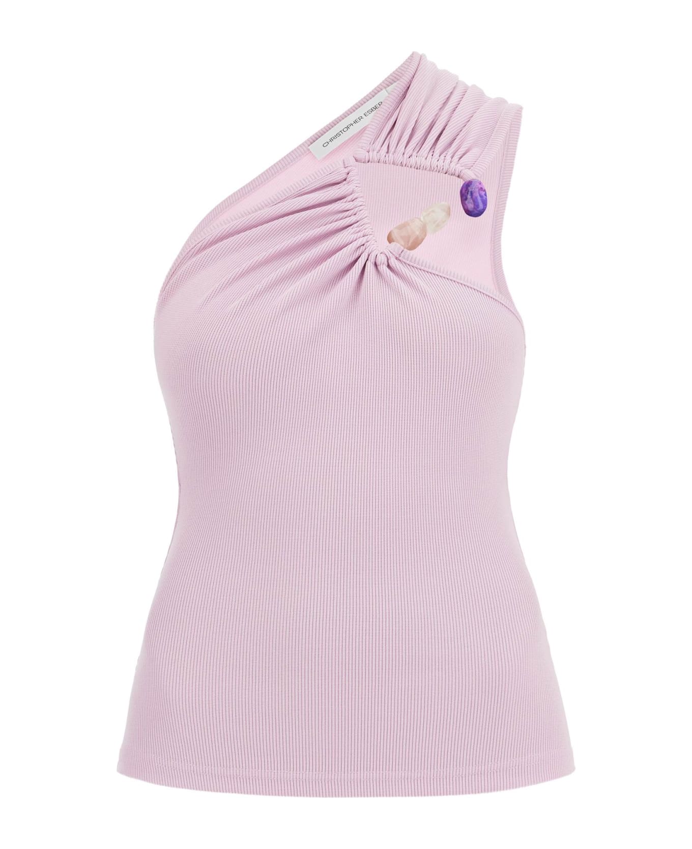 This top by Christopher Esber is made of stretch technical ribbed jersey and features handcrafted stone embellishments that create a cut-out effect. It has a fitted silhouette and one shoulder design. The model is 177 cm tall and wears a UK size 6.
