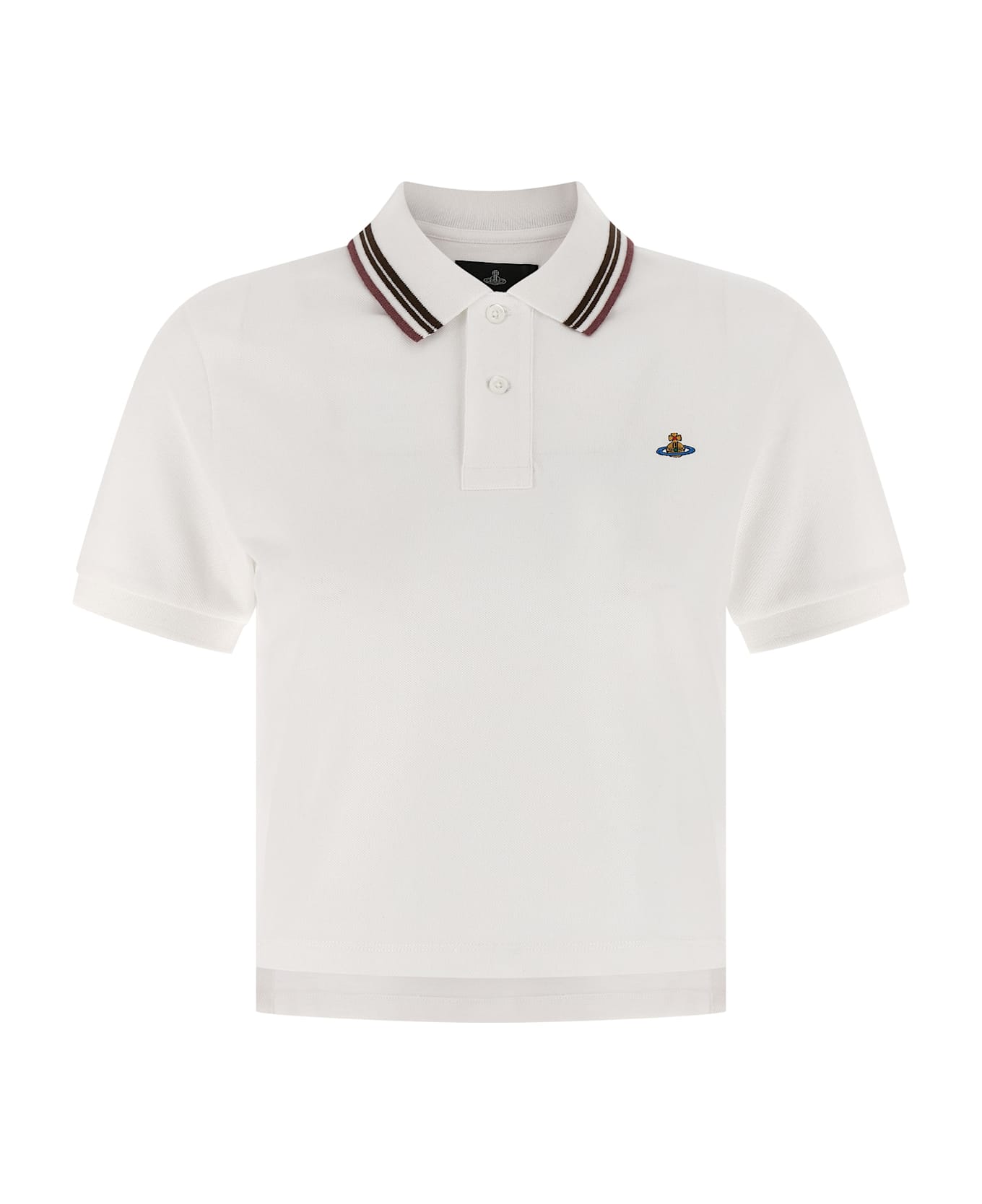 'Mini Classic' cropped polo shirt in piqué cotton with front Orb logo embroidery, collar with contrasting details and buttons, short cuffed sleeves, side slits, and asymmetrical hem. Composition: 100% cotton