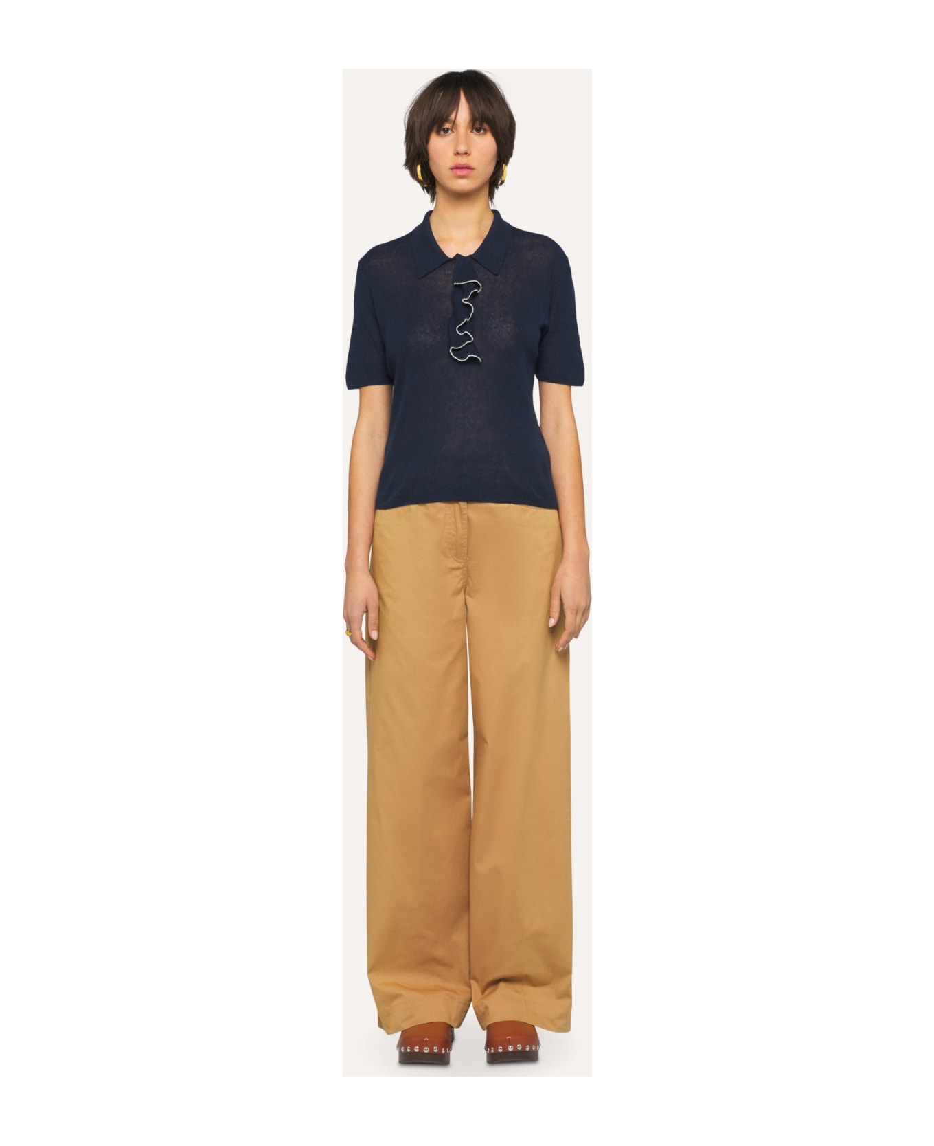 With a preppy allure, this short-sleeved knit polo shirt is a playful and jaunty piece. A chic detail is the pretty two-tone ruffle that hides the mother-of-pearl placket. Crafted from linen and cotton, it's perfect for summer thanks to its cool hand and slim fit.