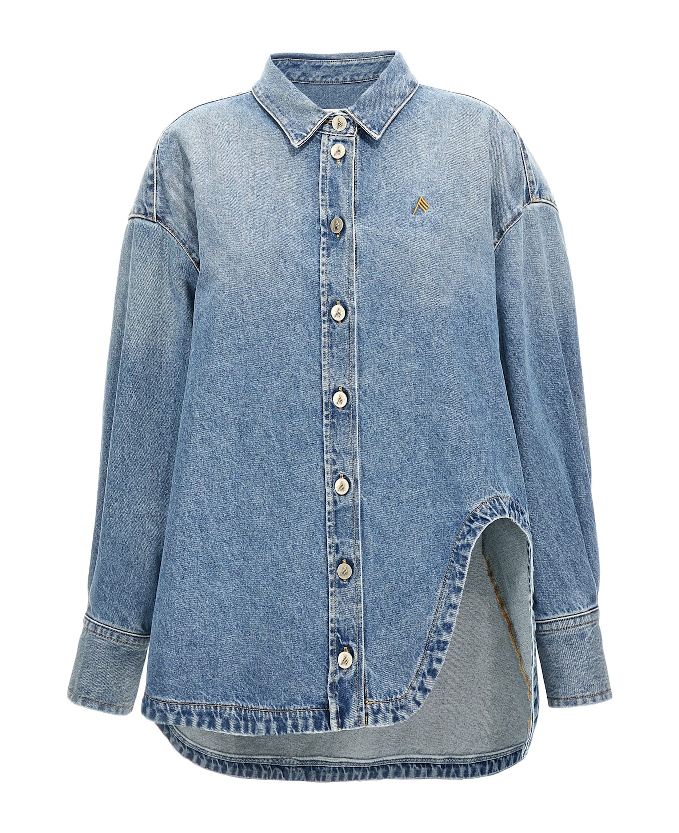 'Diana' heavy cotton denim shirt with front logo embroidery, button closure, long cuffed sleeves, front contoured split. Composition: 100% cotton