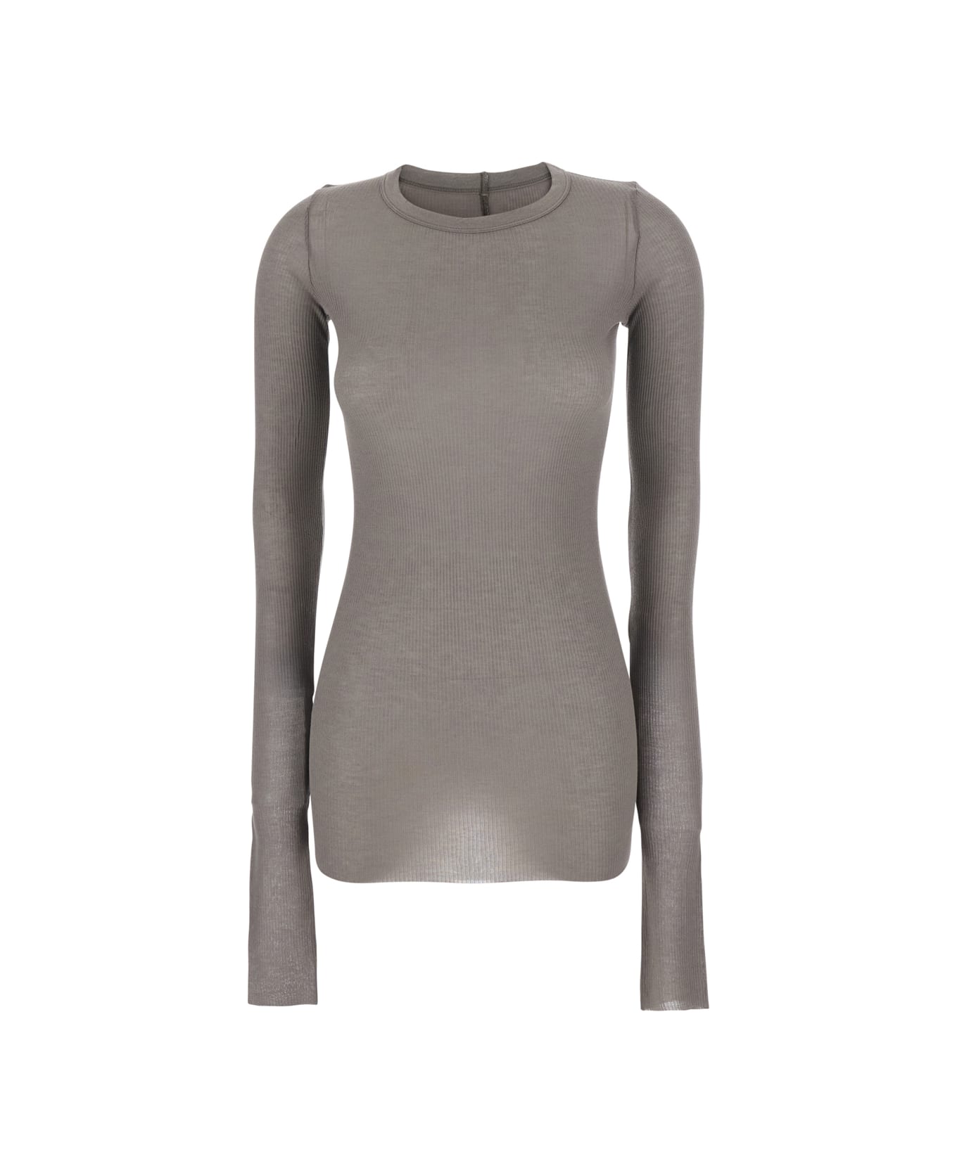 T-shirt Grey Round neck Long sleeves Ribbed design Straight hem Viscose and silk blend Slim fit