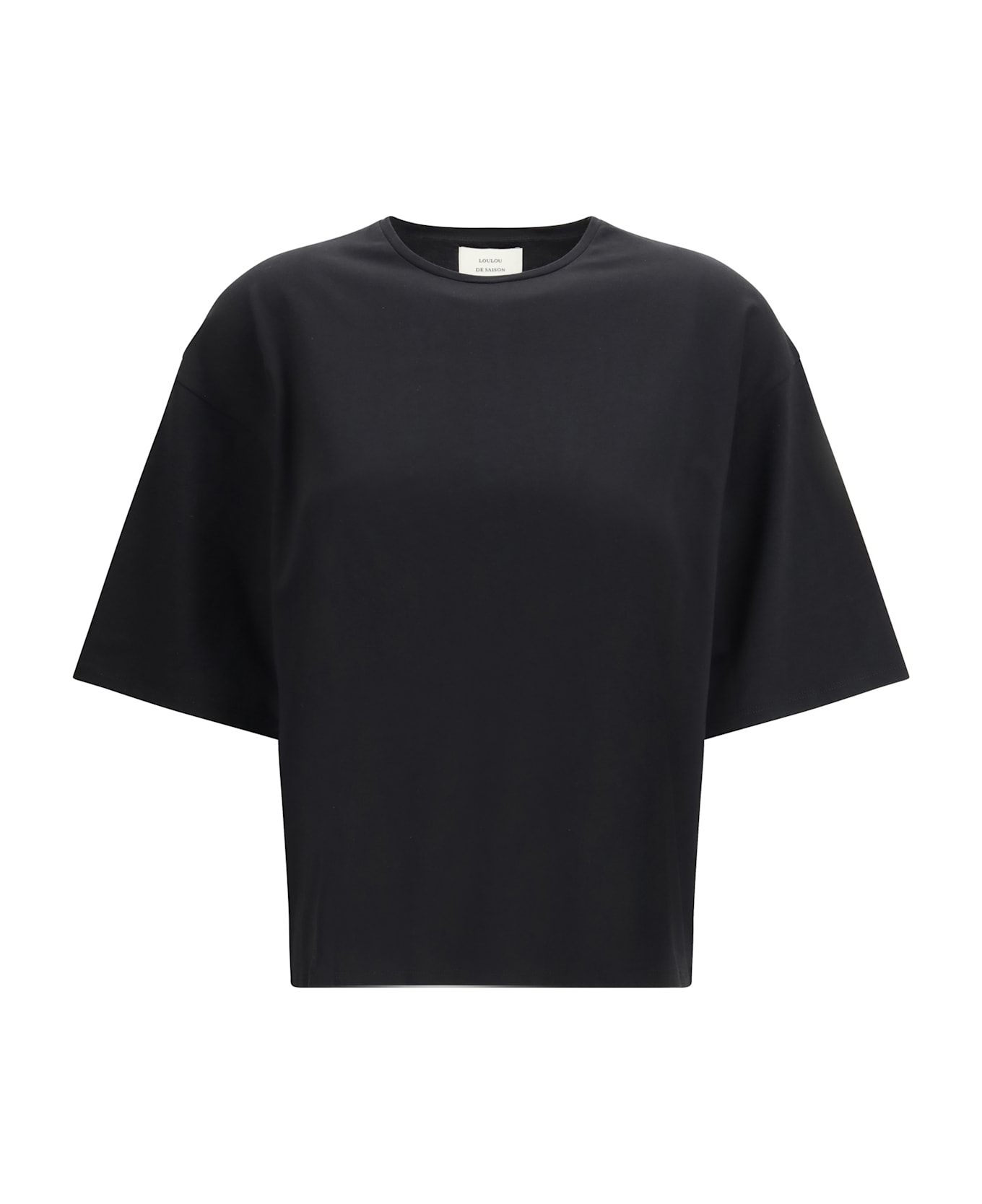 The osis t-shirt by loulou de saison, clean and effortless, featuring a classic crew neckline and dropped shoulders that shape a relaxed silhouette. the short sleeves with slouched shoulders enhance its modern, easy-going appeal, making it a versatile everyday essential.