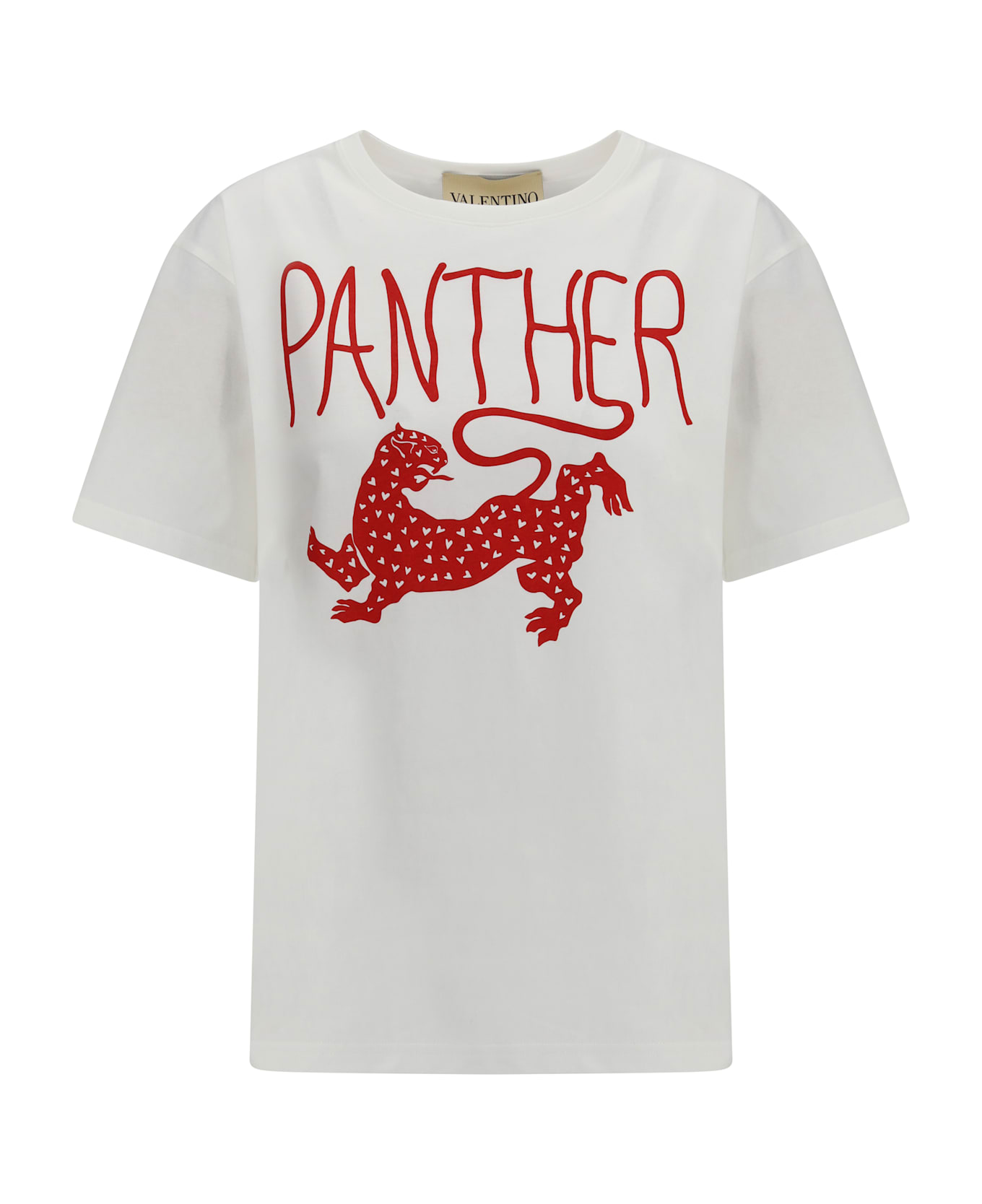 The printed cotton t-shirt by valentino features a panther graphic that defines the design with an iconic and instantly recognizable touch. crafted from high-quality cotton, the piece offers a clean, contemporary fit, enhanced by the front print that gives character and identity to the minimal silhouette.