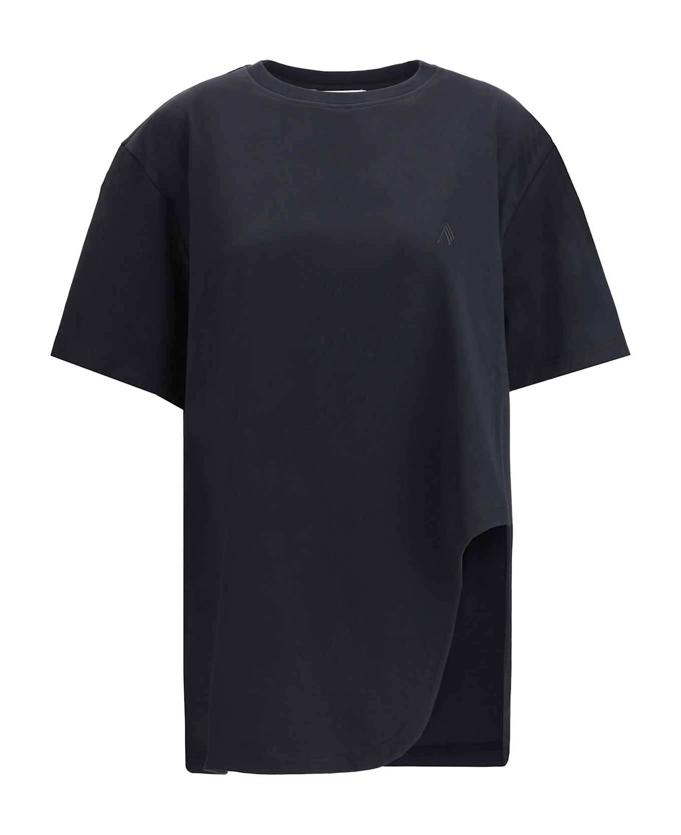 Cotton t-shirt by the attico, ribbed crew neck, iconic brand logo embroidered on front, shaped symmetrical front slit, monochrome pattern, oversize fit. Composition: 100% % Cotton