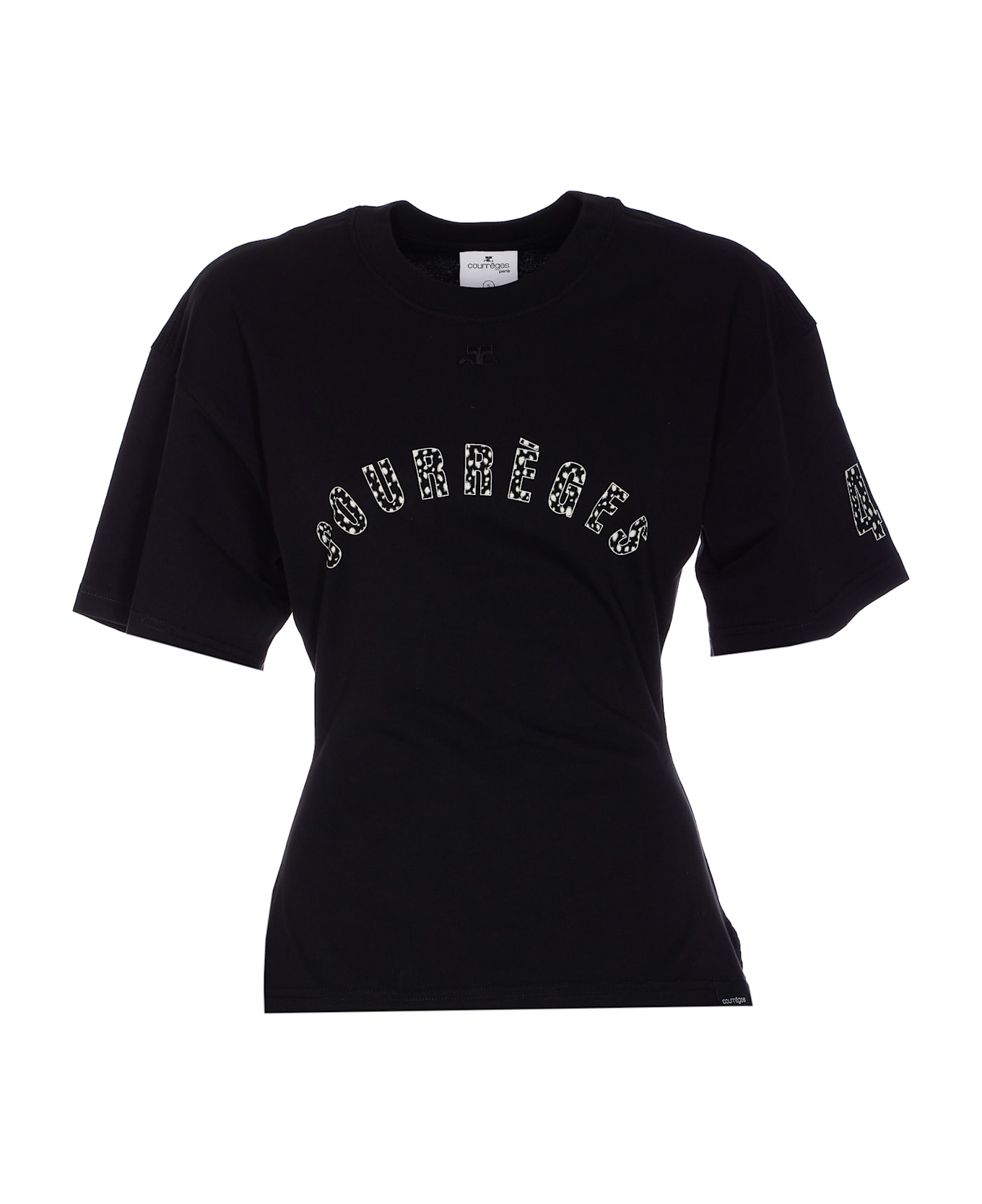 Courreges black print t-shirt, crewneck, print logo on the front, embroidered tone on tone logo