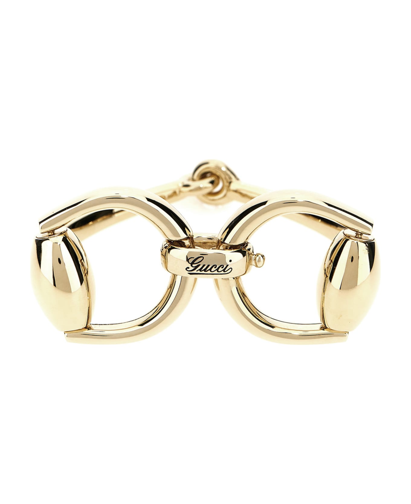 'Morsetto' bracelet in gold metal with antiqued finish, logo engraving. Composition: 100% brass