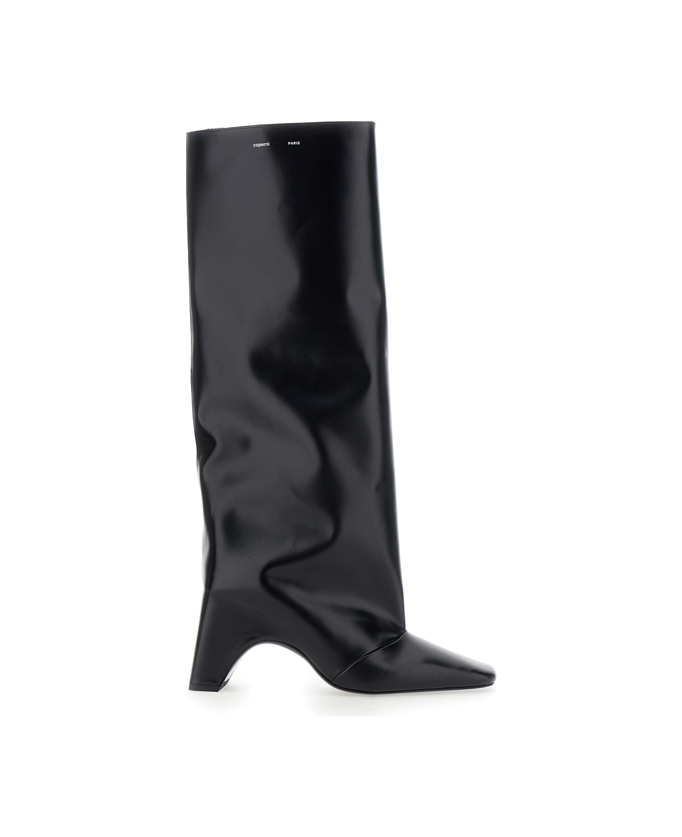 Boots Black Slip-on style Square toe Logo lettering on the side High heel Leather Heel height: 9 cm