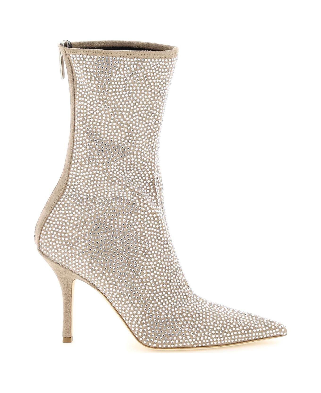 Holly Mama pointed-toe ankle boots by Paris Texas crafted in suede leather with rhinestones applied all-over. Rear zip closure with silver-finished metal puller with engraved logo, fabric and suede lining, leather insole, suede-covered stiletto heel, leather sole.