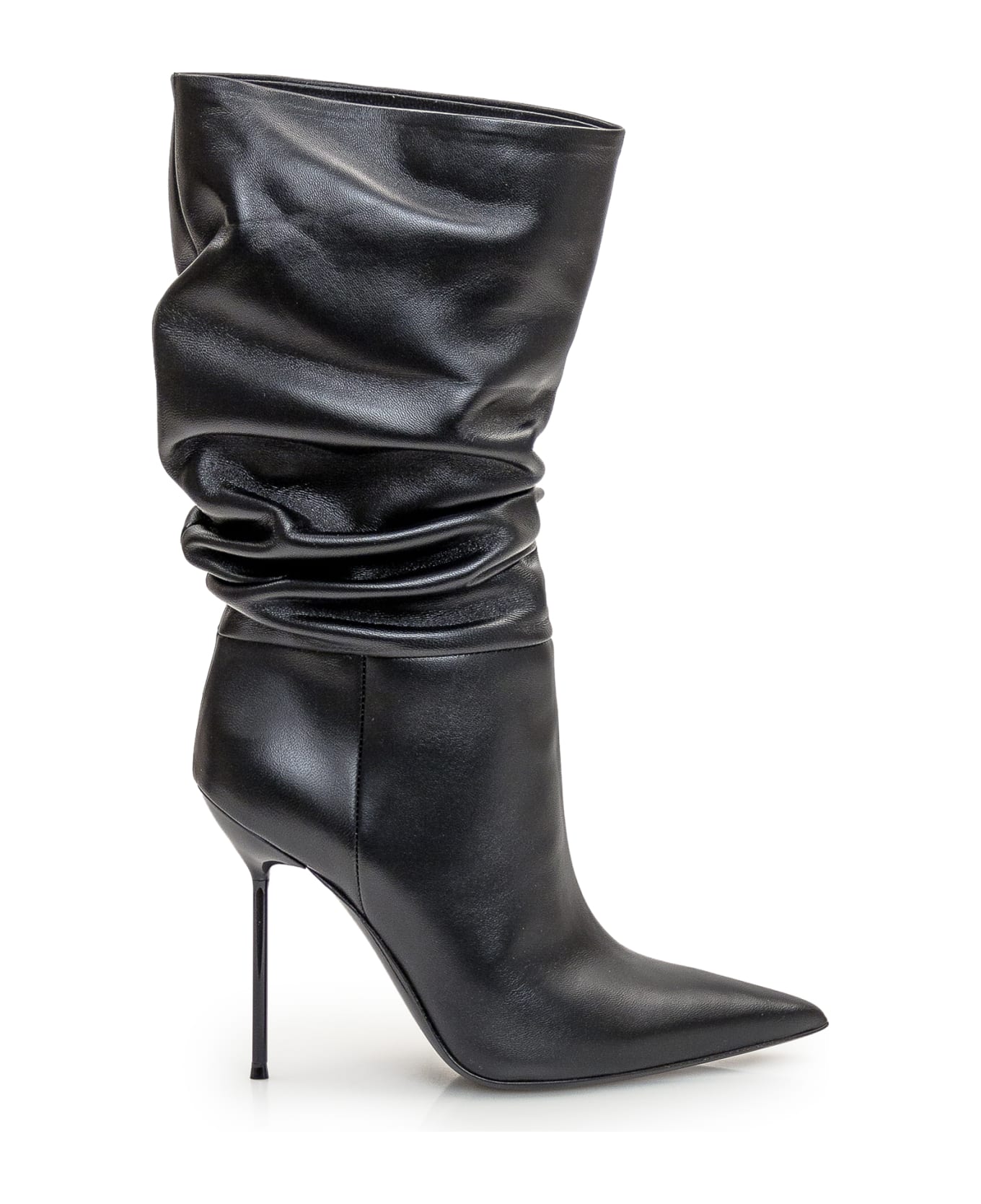Black leather toe boot. Stiletto heel. Slip-on. Sole with logo. Composition: Outside:, 100% Leather Lining:, 100% Leather Sole:, 100% Leather