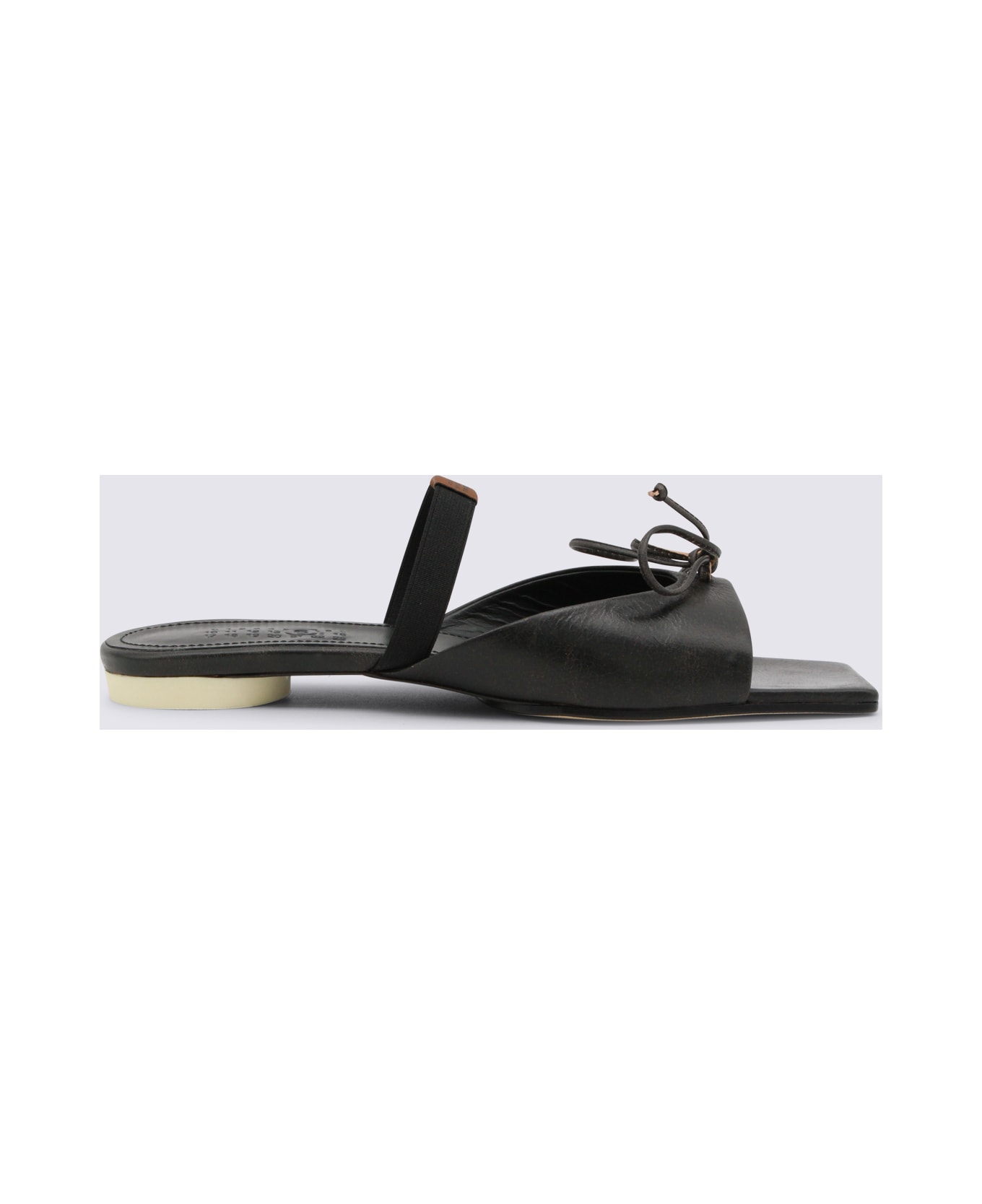 Black leather slingback flats from MM6 Maison Margiela featuring flat line, open suqare toe, bow detail, branded insole and low heel. Composition: _cover, 100% Le Sole, 100% Elastodiene