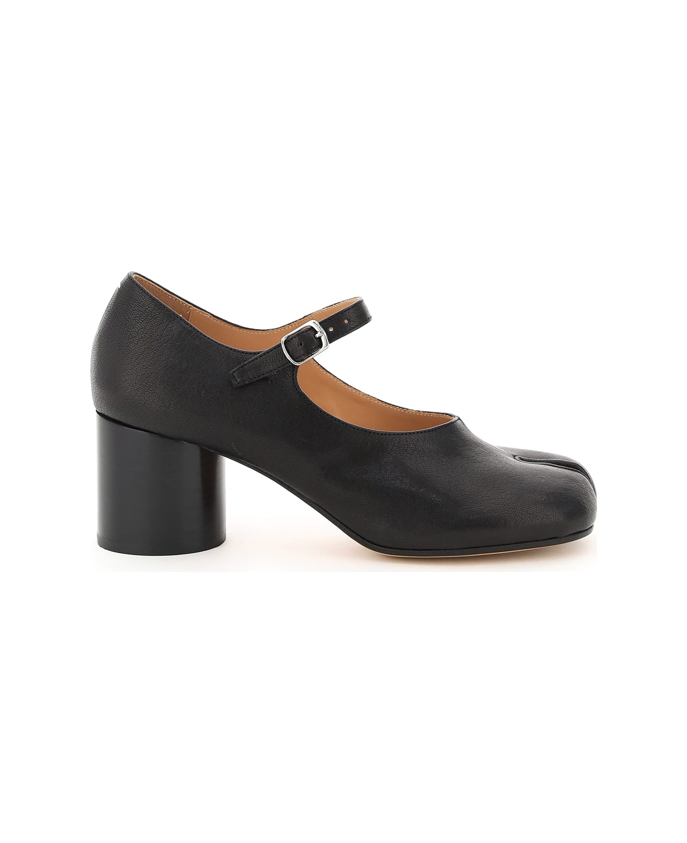 Maison Margiela mary-jane in bovine leather with the iconic Tabi toe and white stitch on the back. Adjustable front strap, cylindrical thick heel, leather lining with logoed insole, leather sole. Composition: 100% pelle