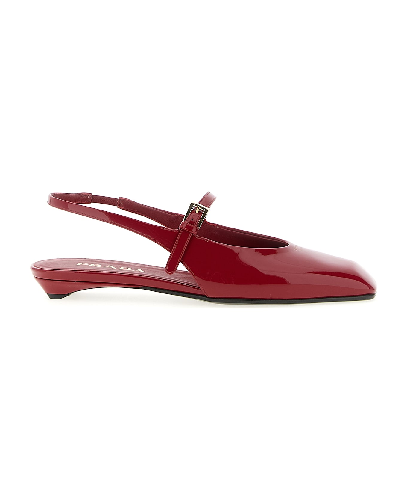 Patent leather slingbacks with square toe, front embossed logo, adjustable top strap, back strap with elastic, leather sole. Composition: 100% calfskin leather (Bos Taurus)