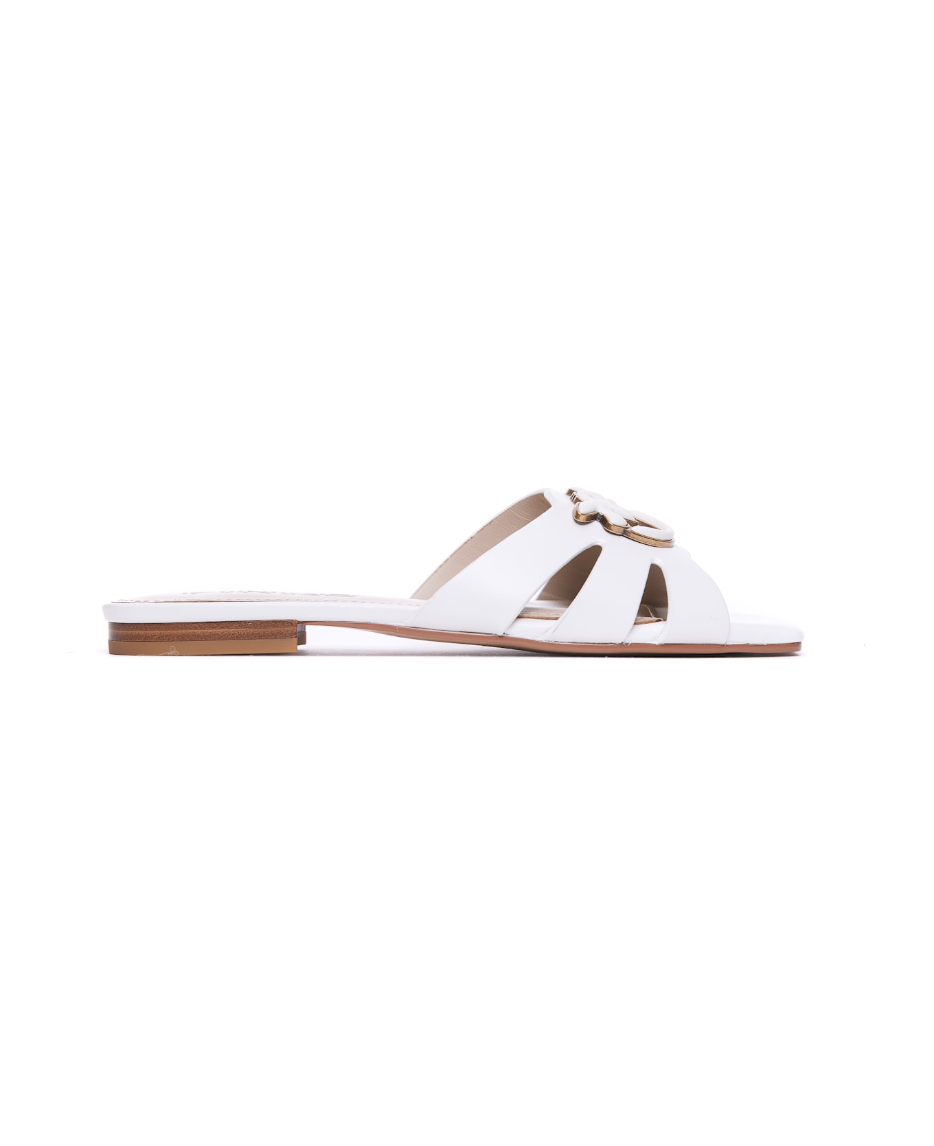 Pinko white Marli sandals, leather upper, slip on, logo, open toe