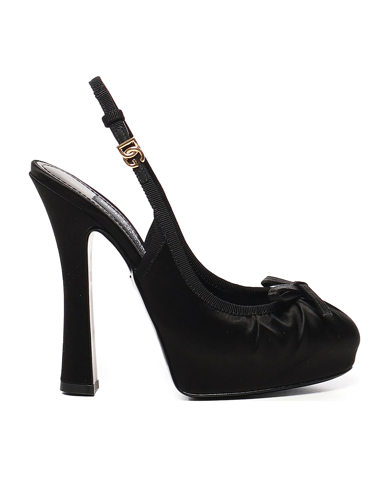 -Made of hand-curled satin with grosgrain trim -Adjustable strap with DG logo -Leather insole -Logoed leather sole -Hollow height 105 mm -Made in Italy -Color: Black