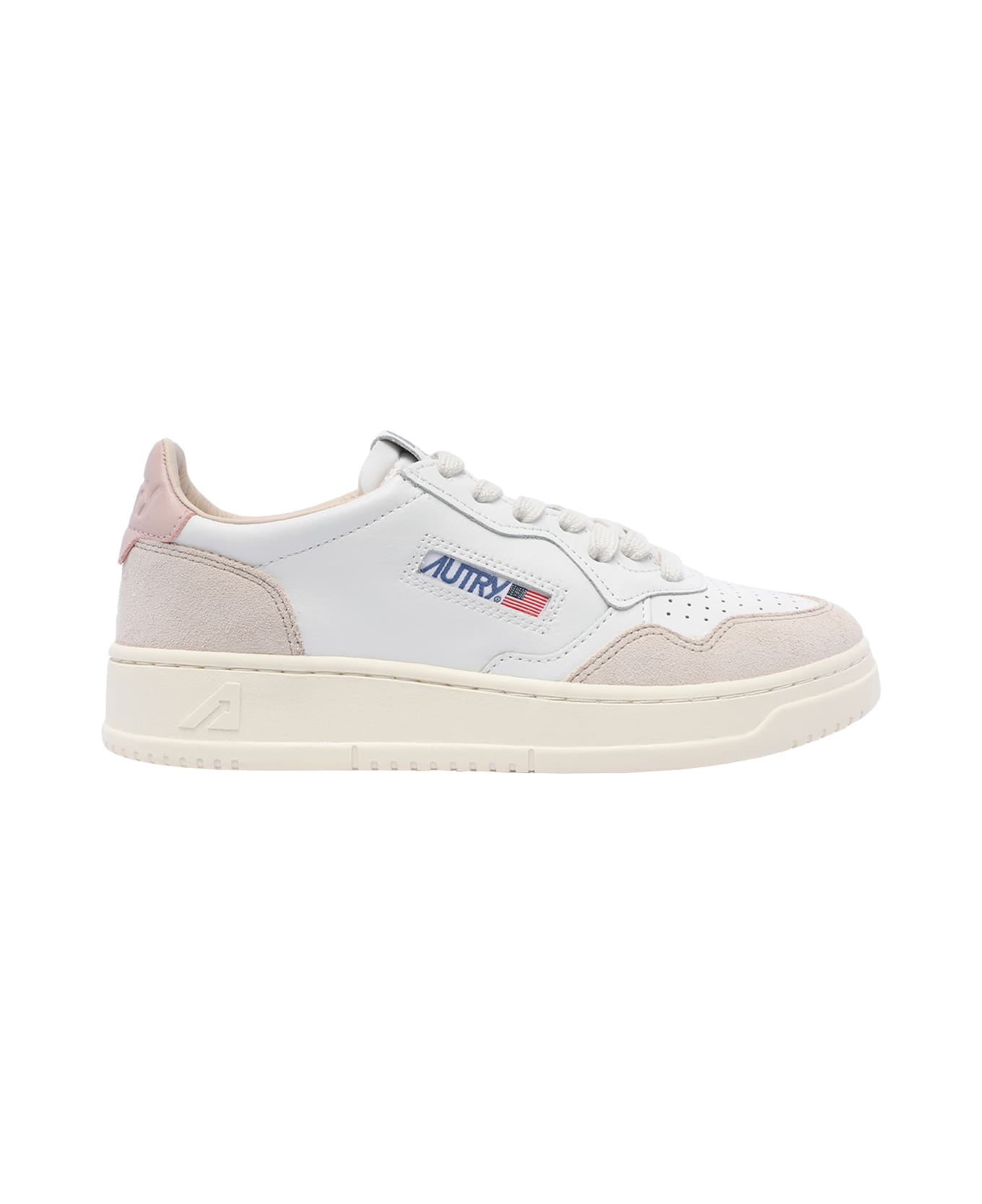 Autry white and beige Medialist sneakers, leather and suede upper, lateral patch logo, round toe