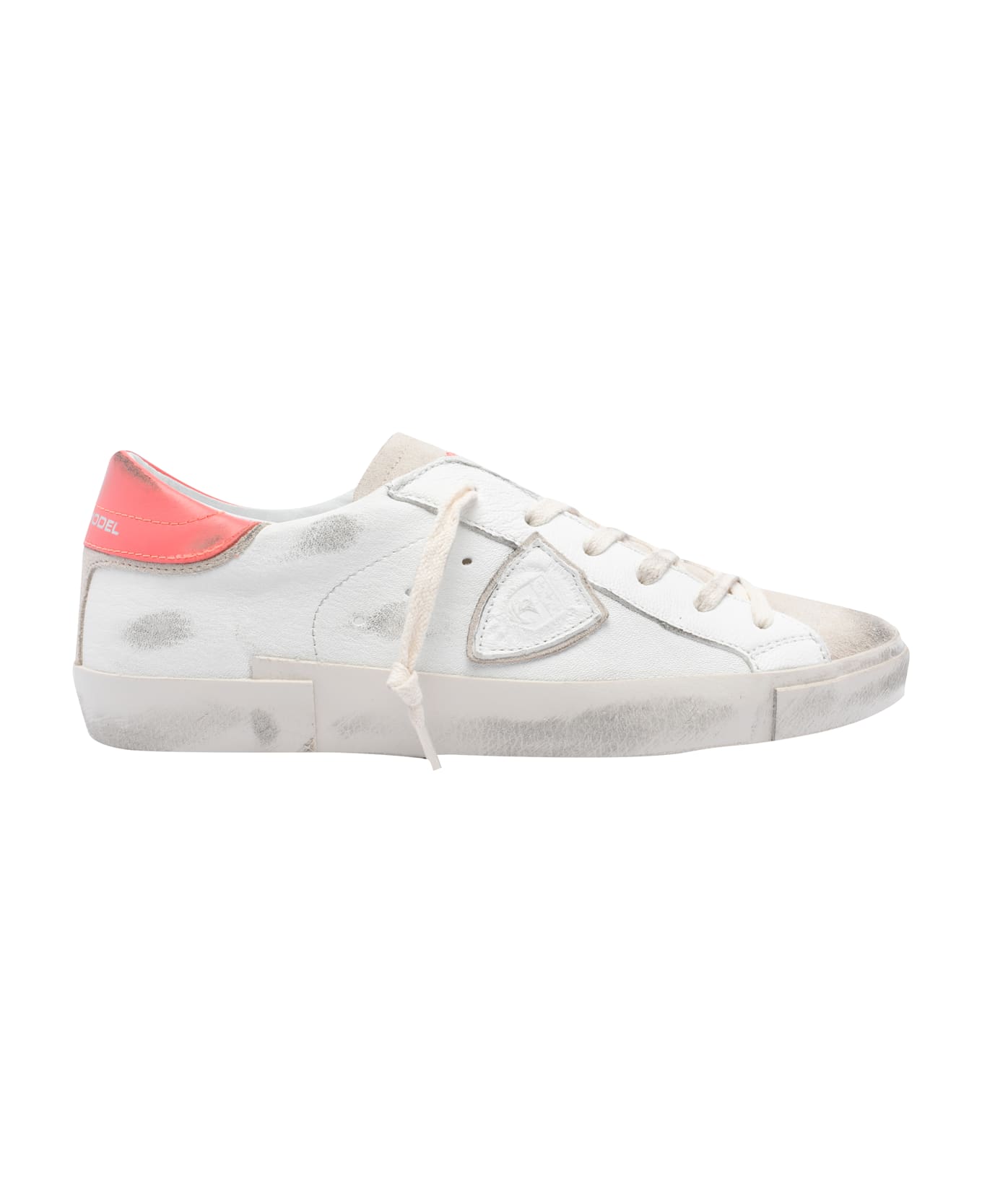 Philippe Model white Prsx sneakers, round toe, lateral logo, logo on back, laces closure, leather upper