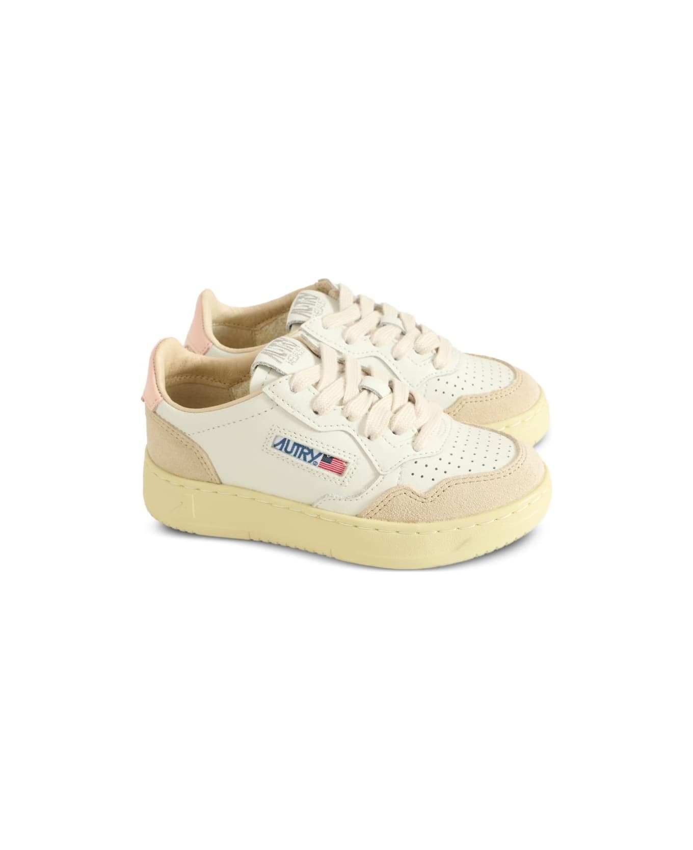 Lace-up closure, white leather, perforated details, platform sole, round toe