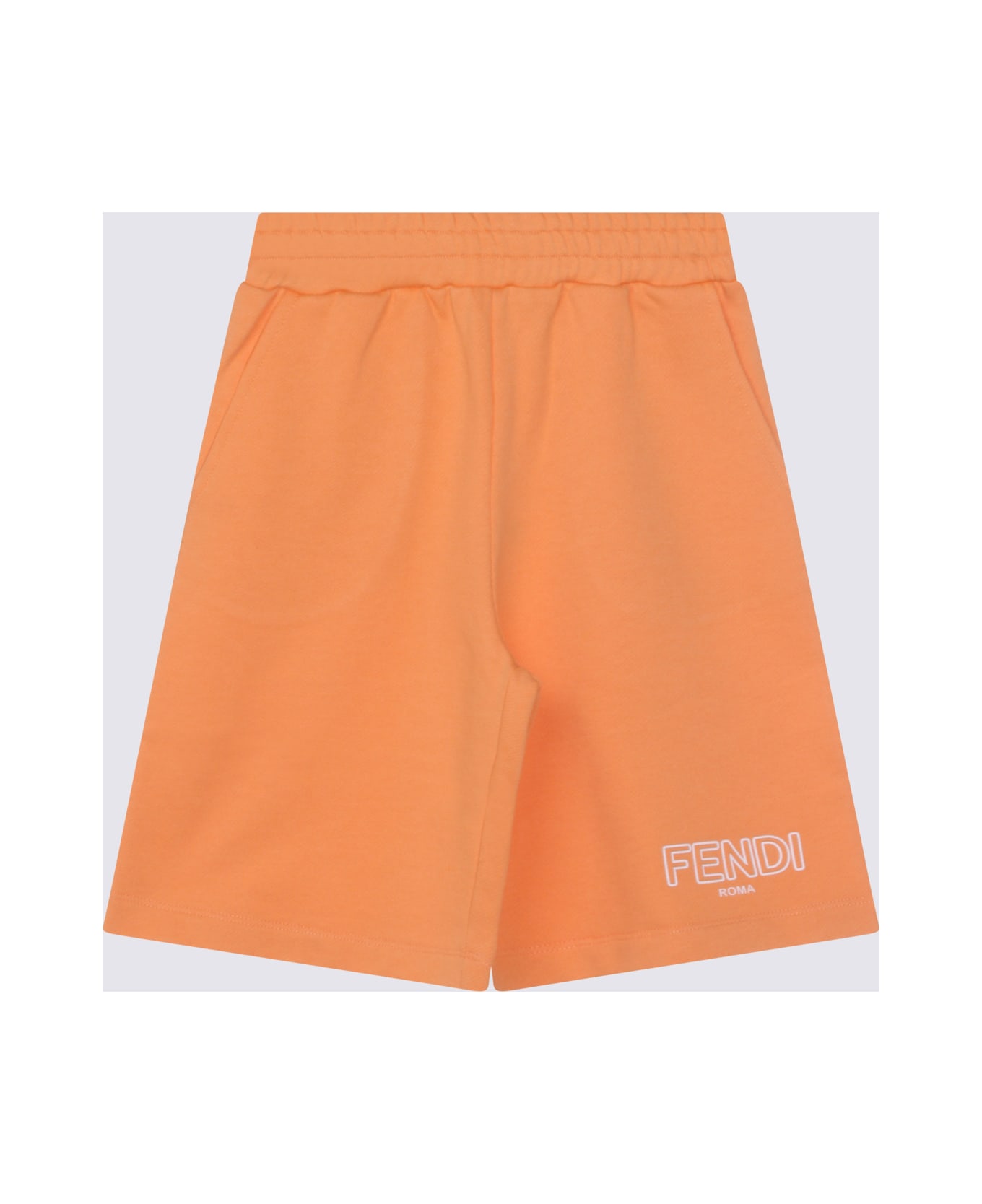 Orange cotton shorts from Fendi Kids featuring mid length, regular fit, embroidered logo inserts and elasticated waistband. Composition: _, 100% Co