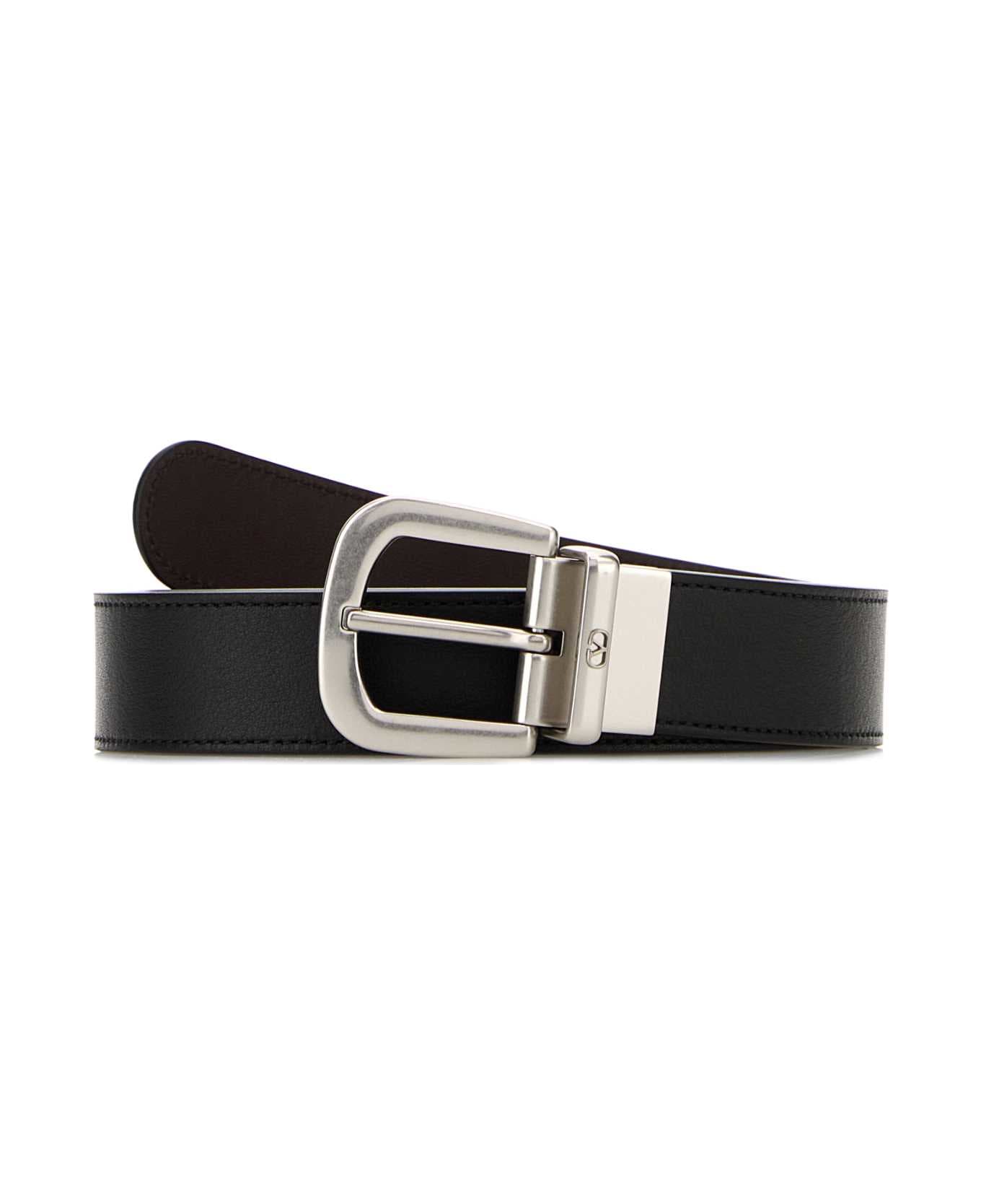 Black Leather Reversible Belt from Valentino Garavani
