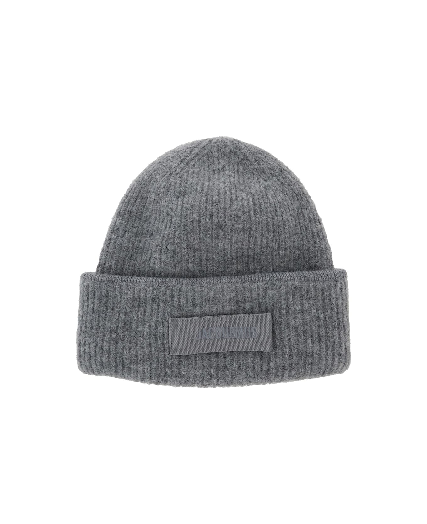 Beanie Grey Logo patch on the brim Round crown Turn-up brim Knit Ribbed details Brushed effect Wool and cashmere Composition: