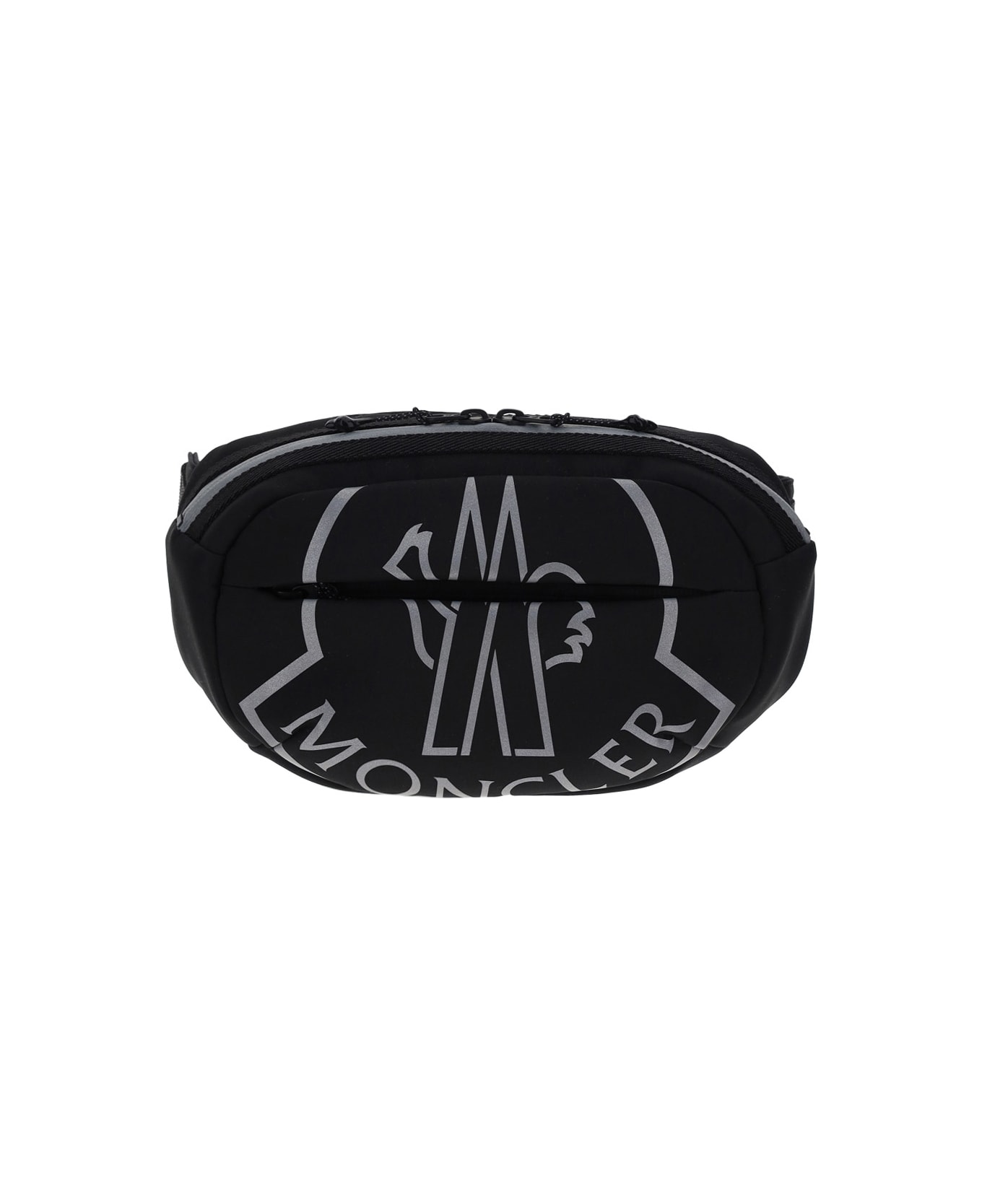 Black Cut Belt Bag from Moncler Cut belt bag by moncler, front zipper closure, front zippered welt pocket, iconic brand monogram printed in contrast on front, adjustable waistband closure with clip buckle.