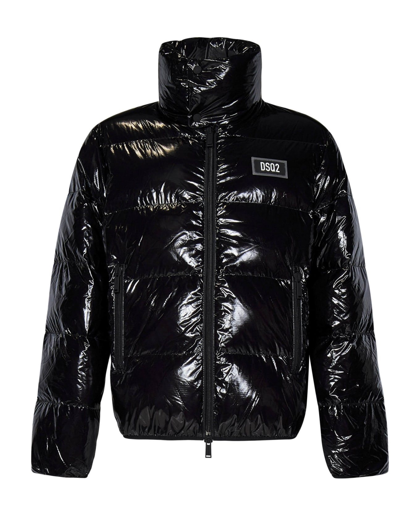 Composition: Front Double-slider Zip Closure High Collar With Snap Buttons Closure; Long Sleeves, Elasticated Cuffs Rubberized Logo Patch Sewn At Chest Vertical Side Zipped Welt Pockets Elasticated Hem Lined, Padded; Horizontal Quilting Regular Fit Black Color 100% Polyamide - Coating: 100% Polyurethane; Lining: 100% Polyamide; Padding: 90% Duck Down, 10% Duck Feather Made In China