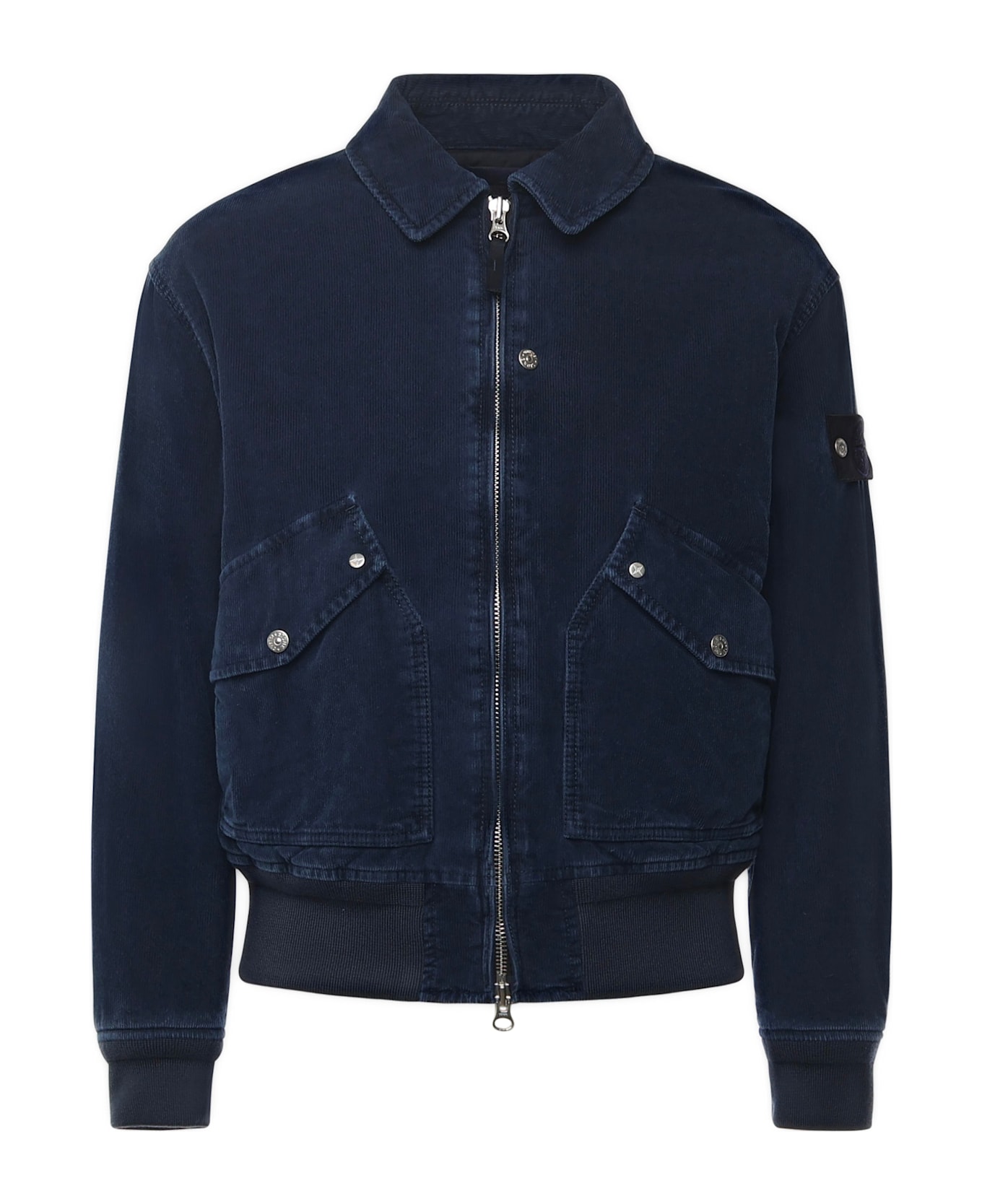 - Made of cotton and polyester - Front zip closure - Elasticated ribbed cuffs and hem - Slanted patch pockets - Regular fit - Made in Italy - Size shown in photo is M - Color: Indigo