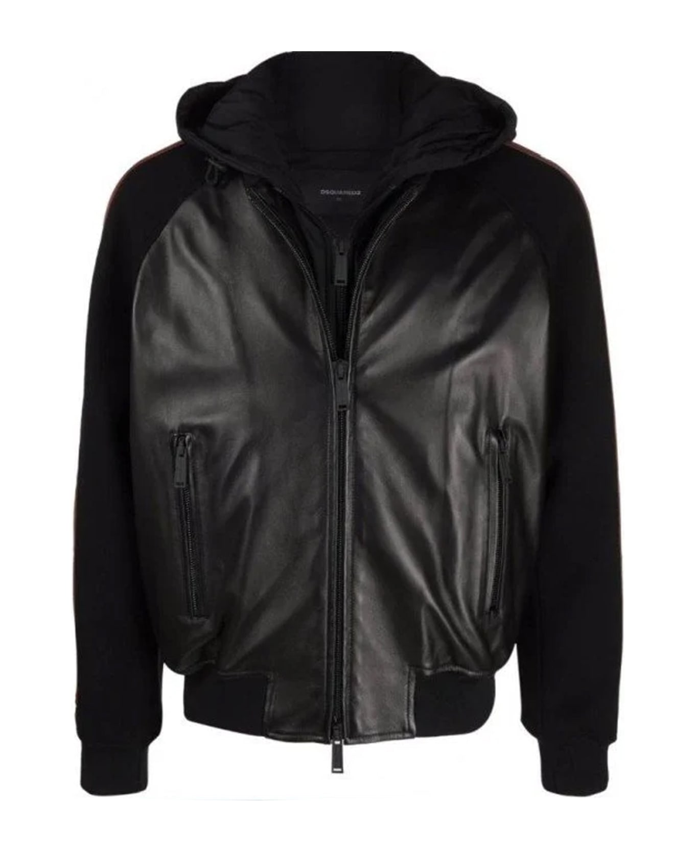 - Composition: 100% calf leather 100% polyester - Hood with drawstring - Front zip closure - Two side zipped pockets - Ribbed trims - Side logo bands - Dry clean only