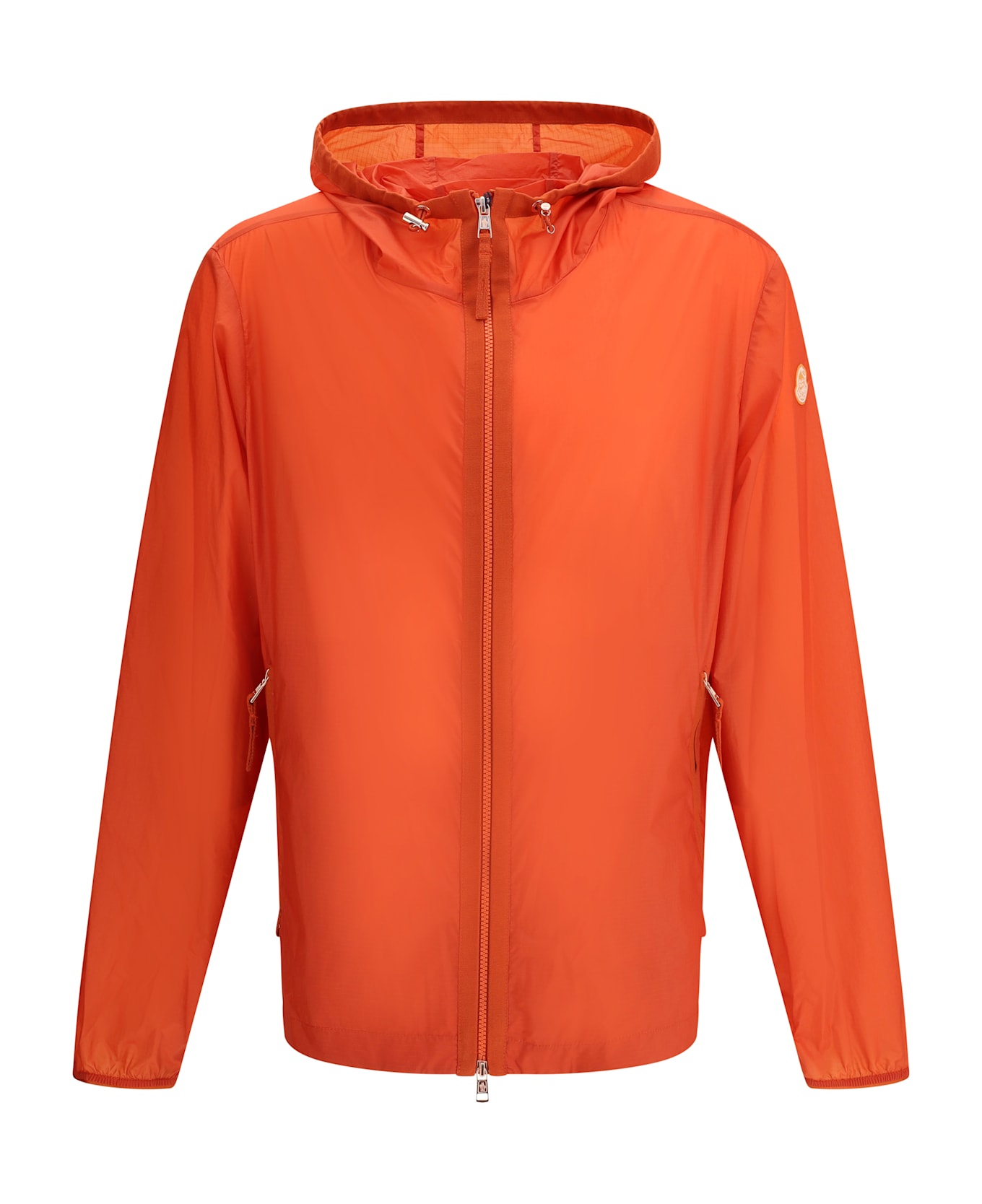 Moncler x gilga farm di donald glover hamlin waterproof jacket made of ripstop nylon, a highly resistant and water-repellent technical fabric, perfect for tackling variable weather conditions. it features a high collar with adjustable hood via a drawstring, a front closure with a double-slider zip and two side welt pockets with zip closure. the design is completed by elasticated cuffs and a logo patch applied on the left sleeve, for a distinctive touch.