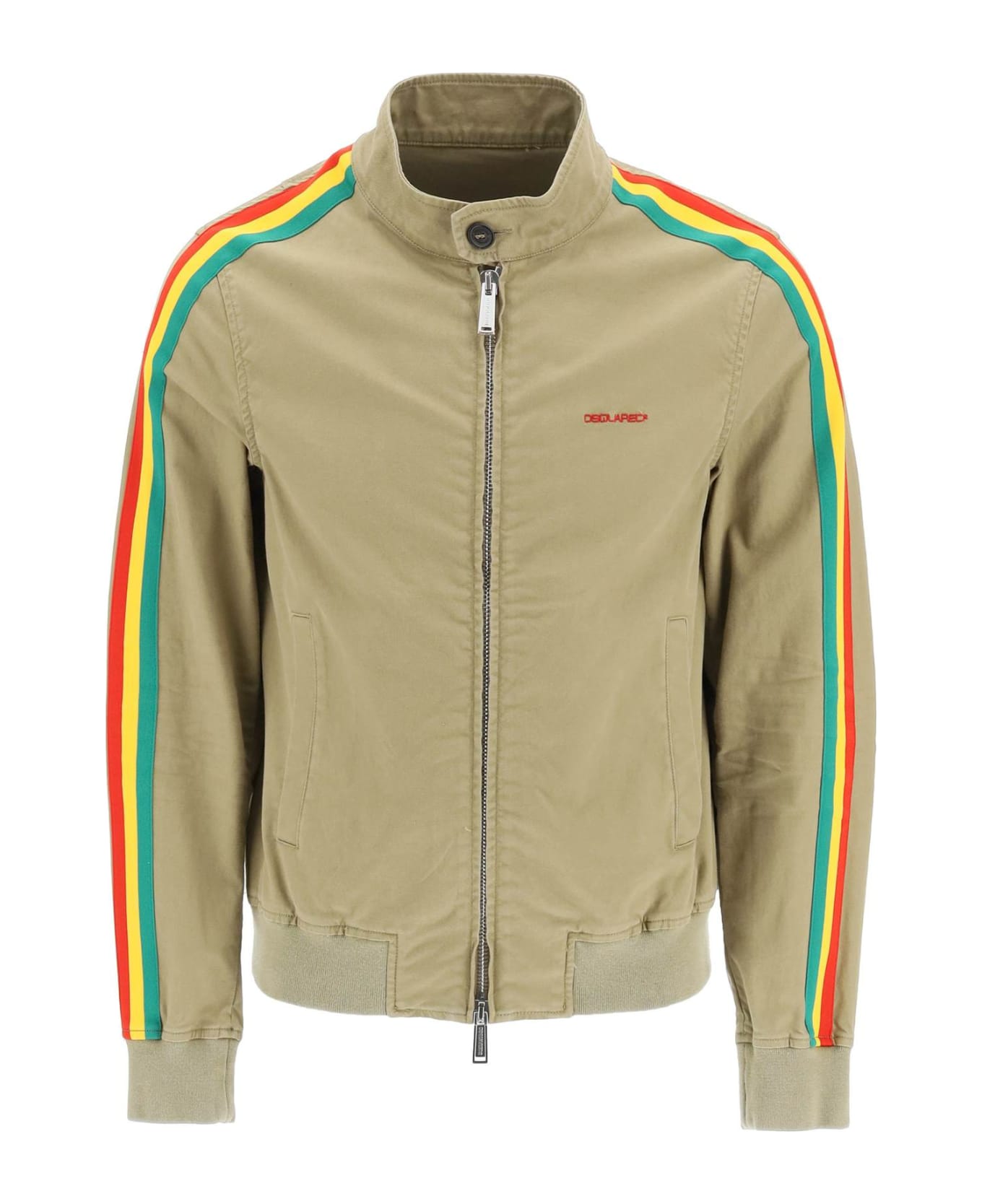 Dsquared2 unlined jacket crafted of stretch cotton drill with contrast striped bands running down the shoulders and sleeves. Finished with rib-knit cuffs and hem, it features two standing pockets, banded collar, double-slider zip fastening, and a logo detail embroidered on the chest. Regular fit. The model is 187 cm tall and wears a size IT 48.