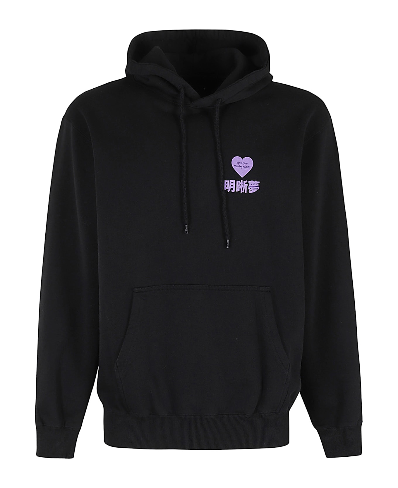 Legal Highs Sweatshirt - Edwin - Black color - Adjustable hood with drawstring - Long sleeves with elastic cuff - Front pouch pocket - Chest and back print in purple - Over fit