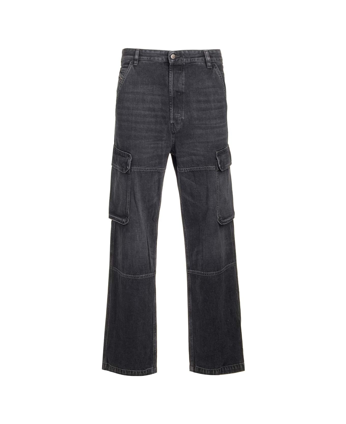 Regular fit with medium waist and straight leg. Cargo pockets with snap buttons Composition: 59%CO 41%MD