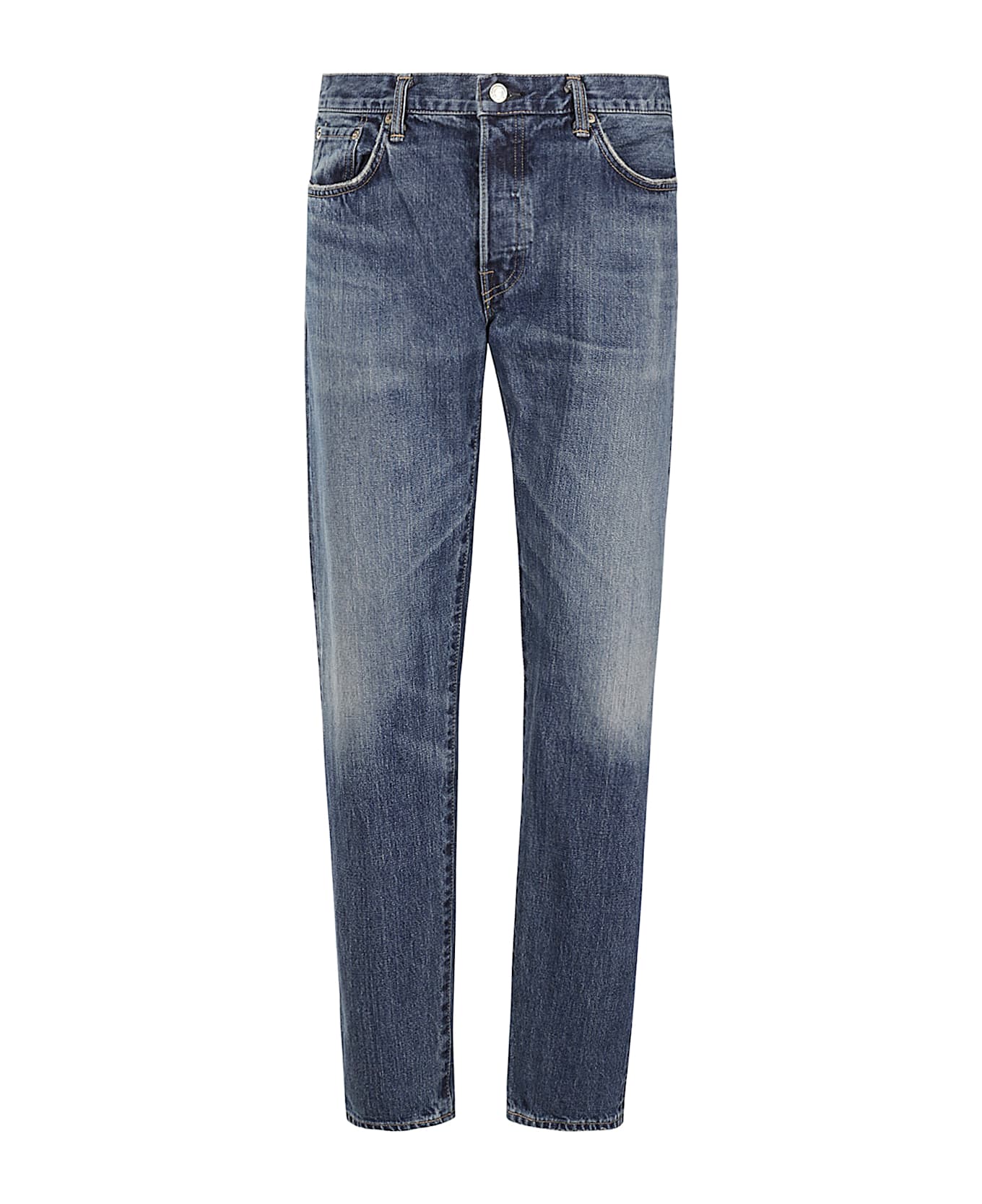 Regular Tapered Jeans - Edwin - Medium blue used color - Medium waist with belt loops - Tapered leg - Five-pocket style - Front button closure - Regular fit
