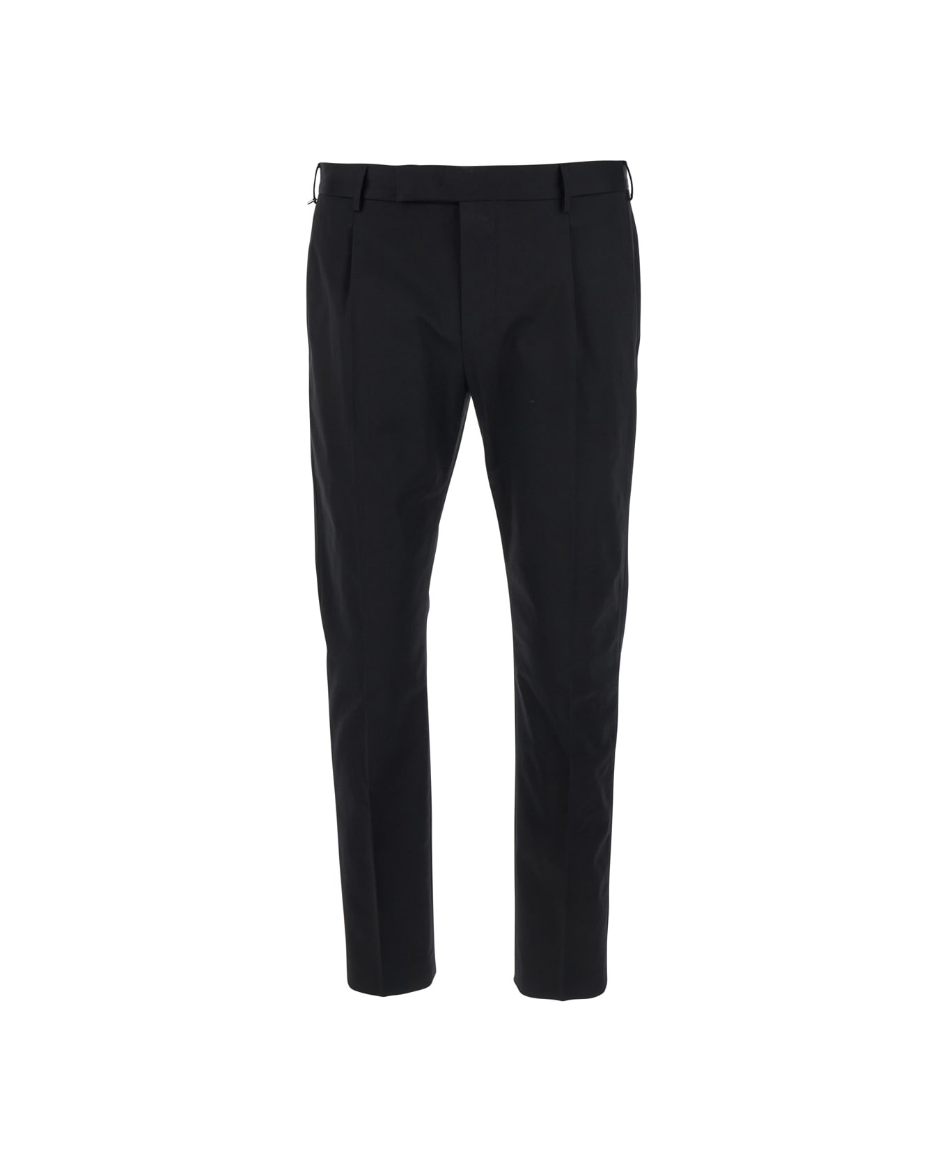 Pants Black Belt loops Hidden front closure Two side pockets Pants on the front Two welt pockets on the back Cotton Slim fit
