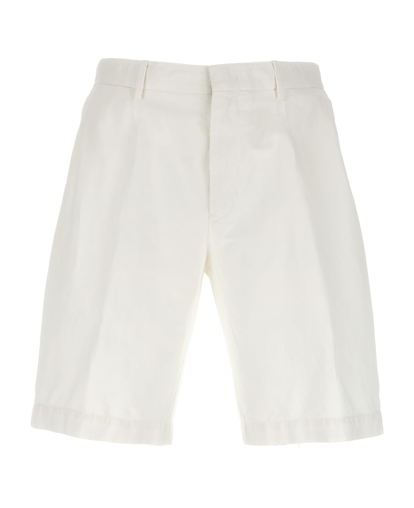 Cotton and linen blend bermuda shorts with front pleats, a hook-and-eye zip closure, pockets. Composition: 71% cotton 29% linen