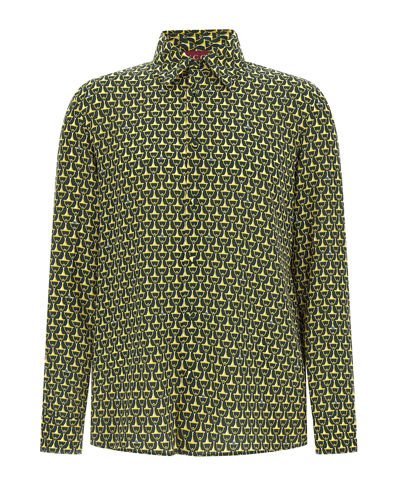 Crêpe de Chine print silk shirt All-over horsebit, pointed collar, front button closure, long cuffed sleeves, side slits. Composition: 100% silk