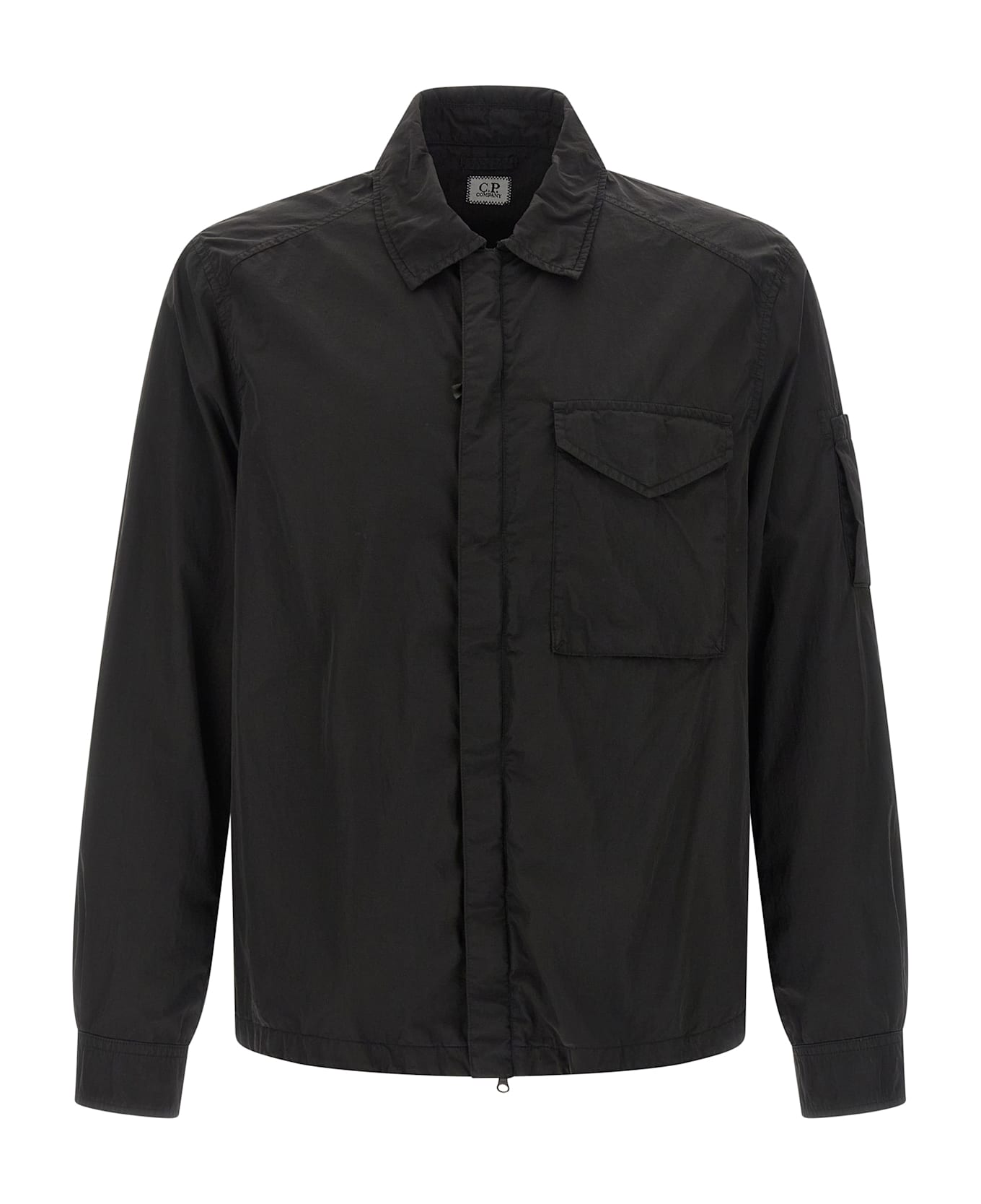 Garment-dyed Chrome-R overshirt with anti-drip treatment, front zip closure, pockets, long sleeves with cuffs and lens, breathable mesh lining. SUSTAINABLE: This product is made of Chrome-R, a 100% recycled glossy multifilament nylon, obtained from processing waste and transformed into a new Global Recycled Standard (GRS) certified fiber.