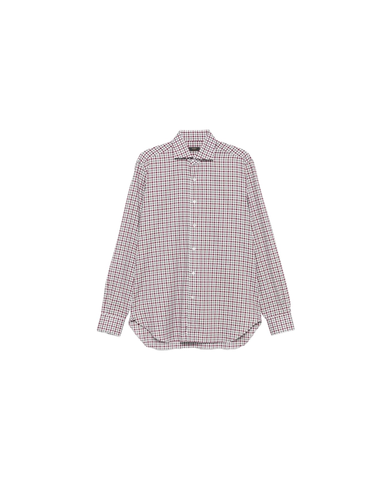 white/red checked pattern front button fastening long sleeves buttoned cuffs curved hem