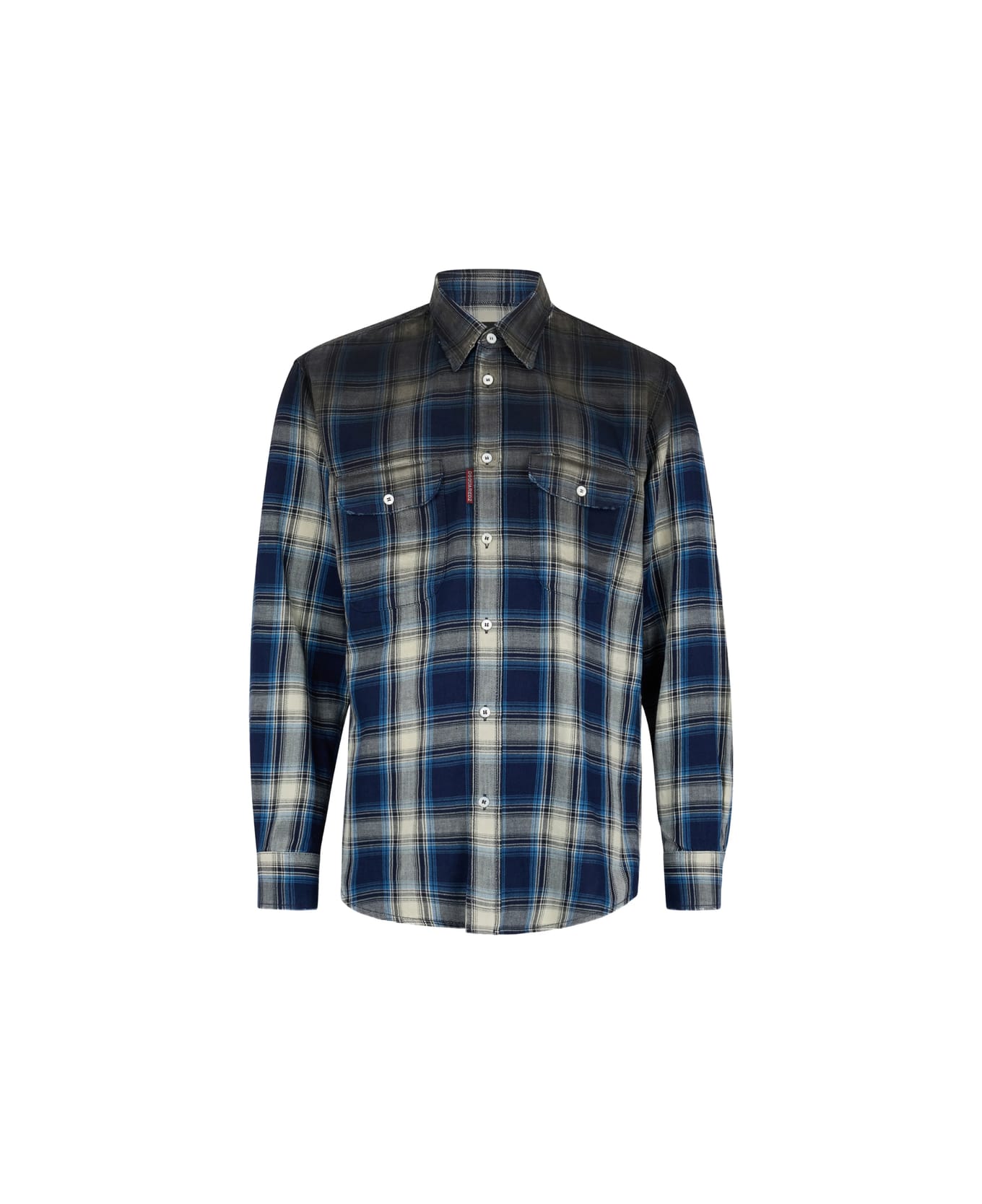 blue plaid pattern chest pockets button fastening long sleeves buttoned cuffs
