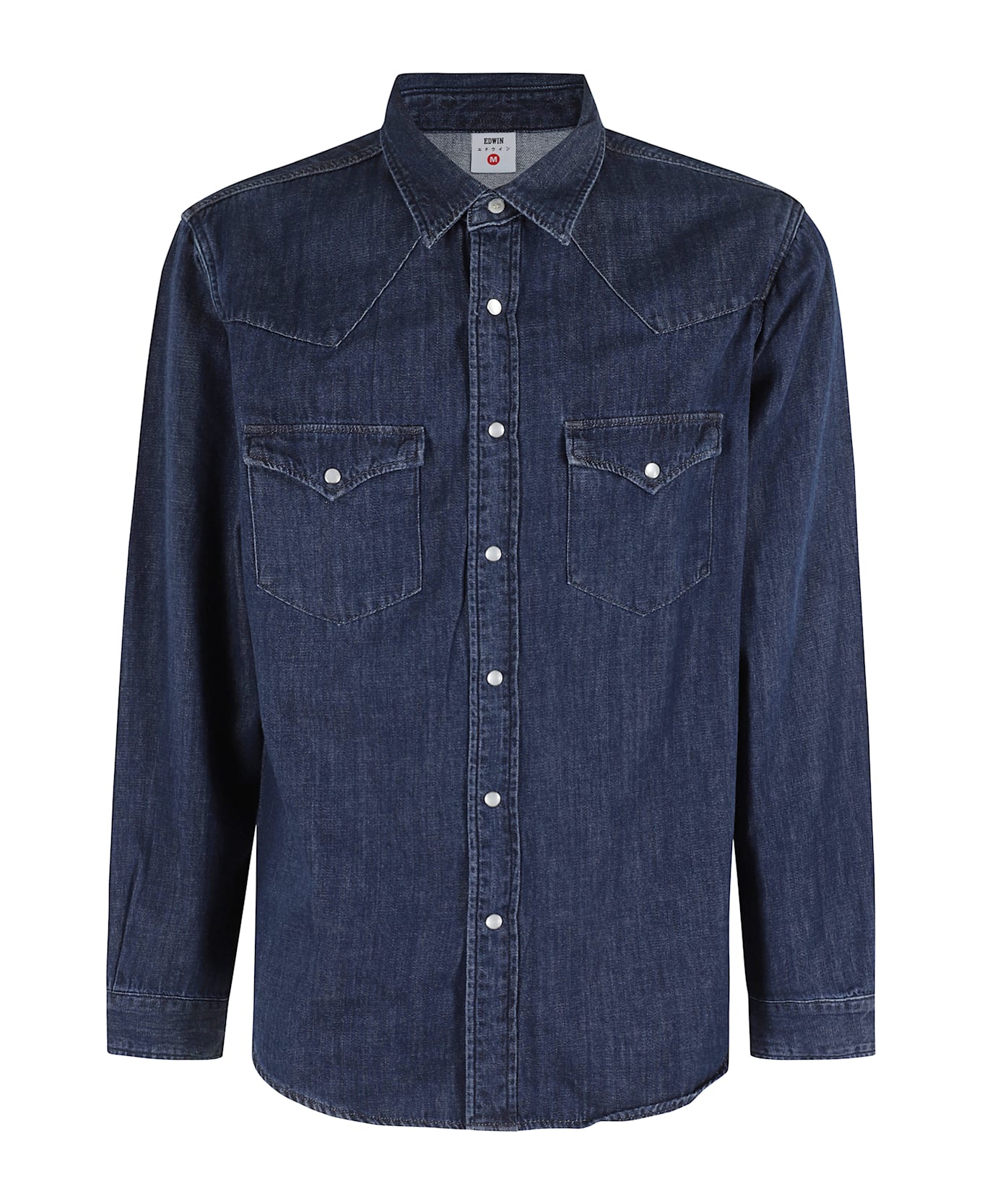 Western shirt - Edwin - Dark blue color - Classic collar - Long sleeve with cuff and buttons - Flap and button patch pockets on chest - Front button closure - Regular fit