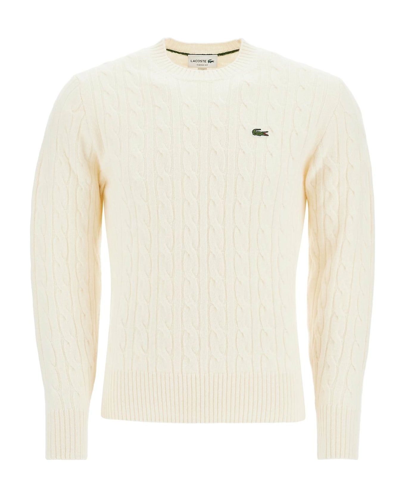 This Lacoste crew neck pullover is made of pure wool and features a braided design. The iconic crocodile logo adorns the chest, adding a touch of style to this classic piece. Finished with ribbed edges and a regular fit, it is perfect for any occasion. The model is 182 cm tall and wears size 3/S.
