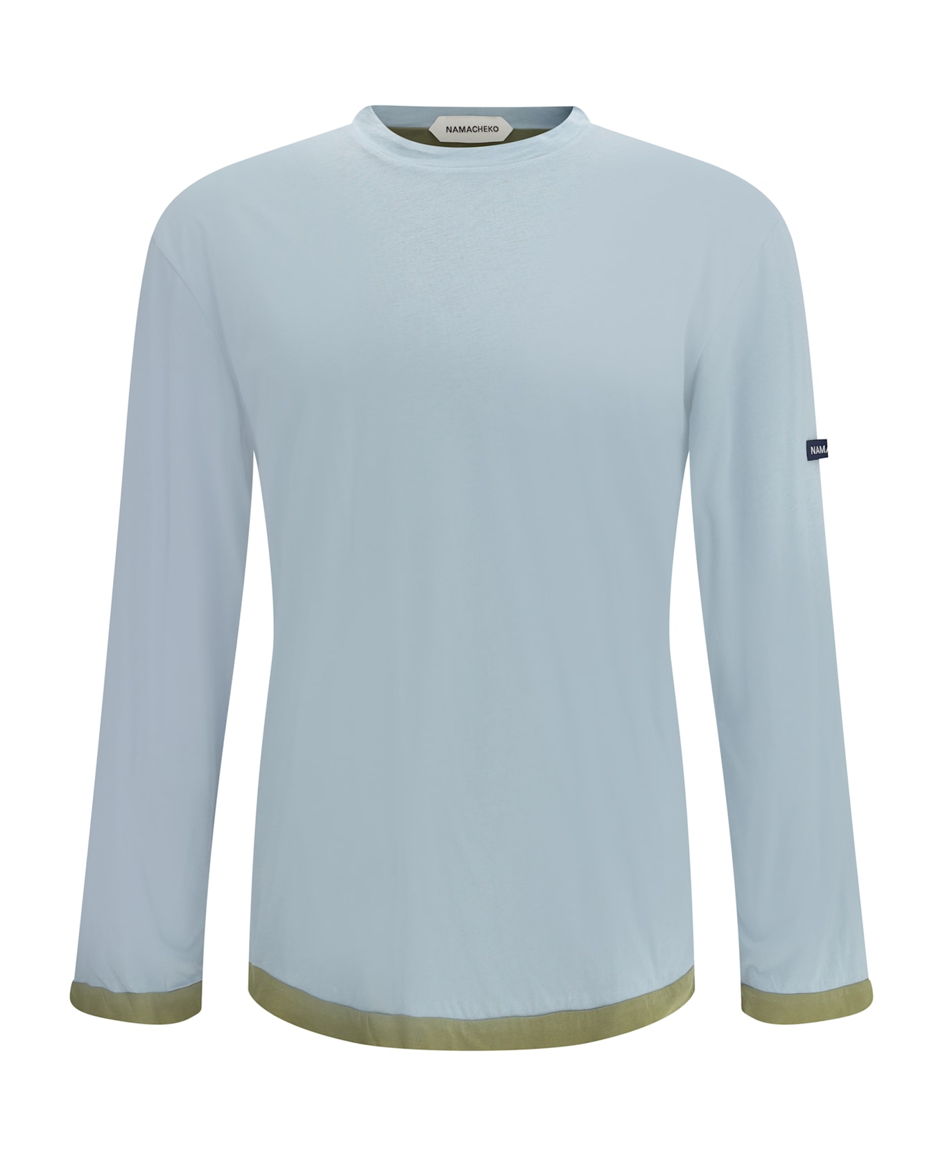 Namacheko's coupled long sleeve jersey, made of pure cotton and defined by an essential design with characterful details. contrasting hems enhance the structure of the garment, while the brand's iconic monogram patch applied on the left sleeve adds a distinctive touch. ideal for completing casual looks with a contemporary and sophisticated style.