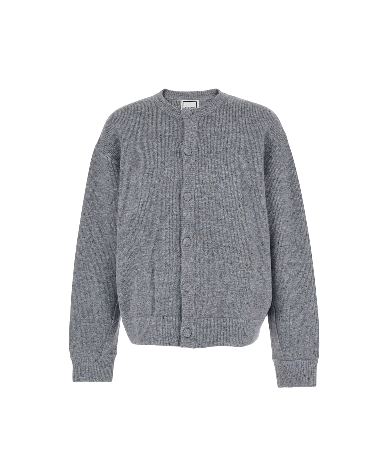 Cardigan Grey Crewneck Long sleeves Front button closure Straight hem Wool blend Regular fit