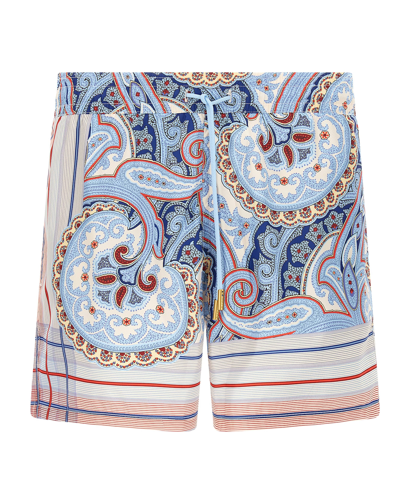 Technical fabric swimsuit with all-over Paisley print, midi boxer style, back logo patch, adjustable drawstring and elastic at the waist, pockets, inner mesh briefs. Composition: 100% polyester