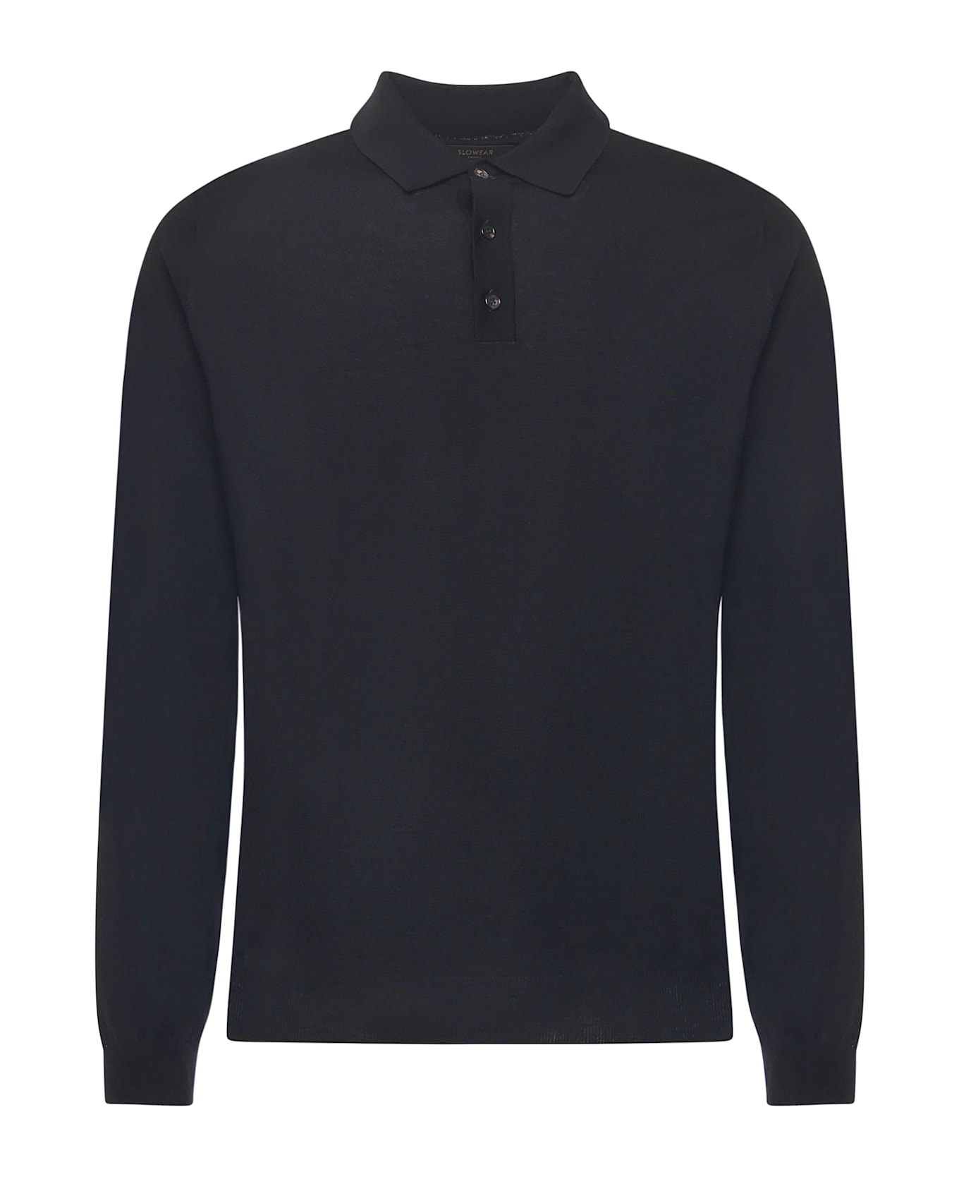 - 3-button front closure - Long sleeves - Ribbed cuffs and hem - Regular fit - Size shown in photo is 46 - Made in Italy - Color: Black