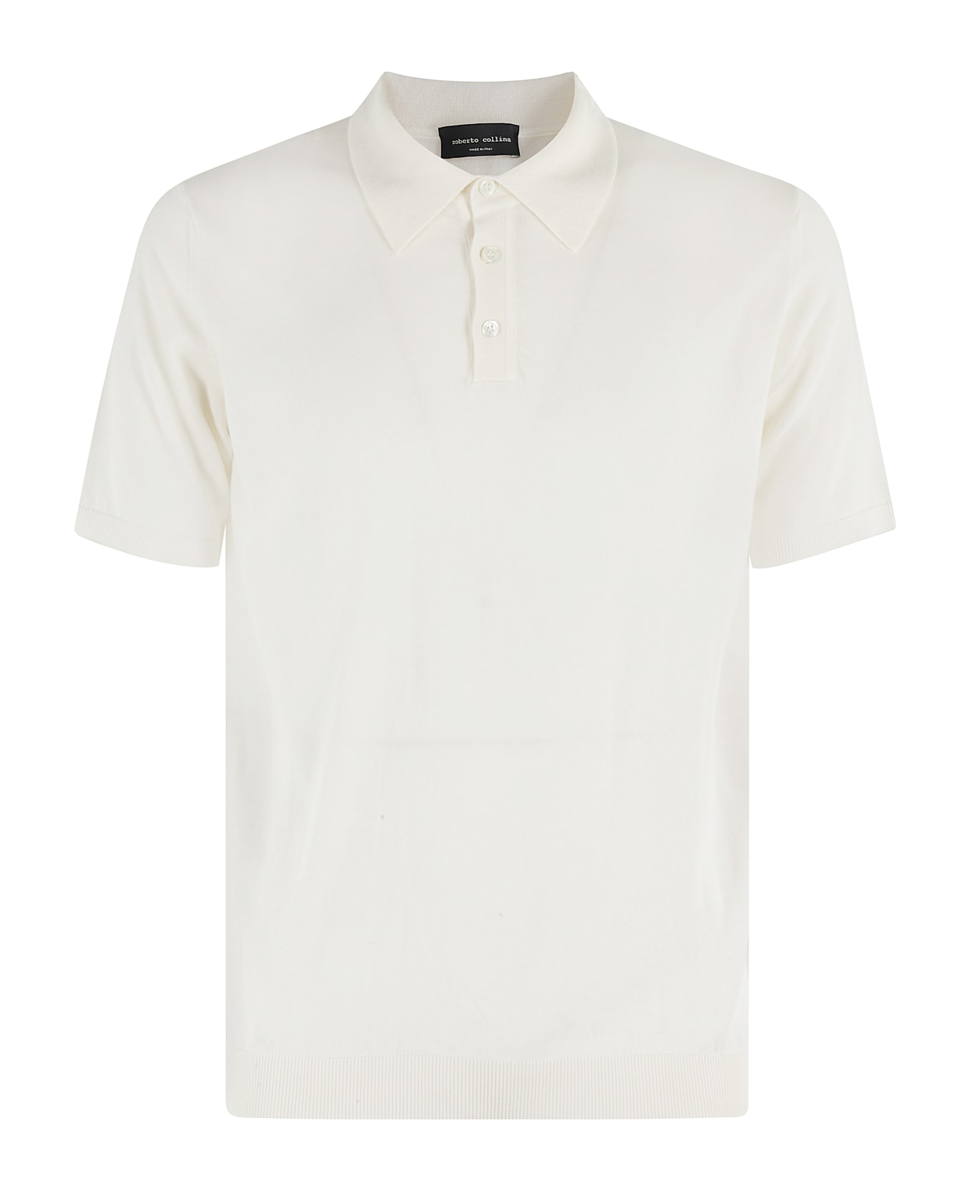 Polo shirt - Roberto Collina - Ecru color - Polo collar with buttons - Short sleeve - Ribbed trim - Regular fit