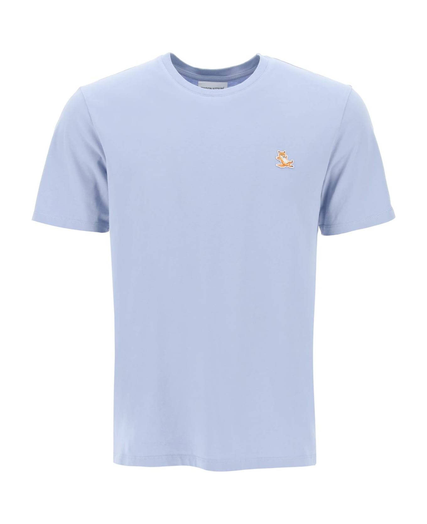 Maison Kitsuné crew-neck t-shirt in light cotton jersey, detailed with the iconic Chillax Fox embroidered on the chest. Relaxed fit, micro ribbed neck. The model is 183 cm tall and wears a size L.
