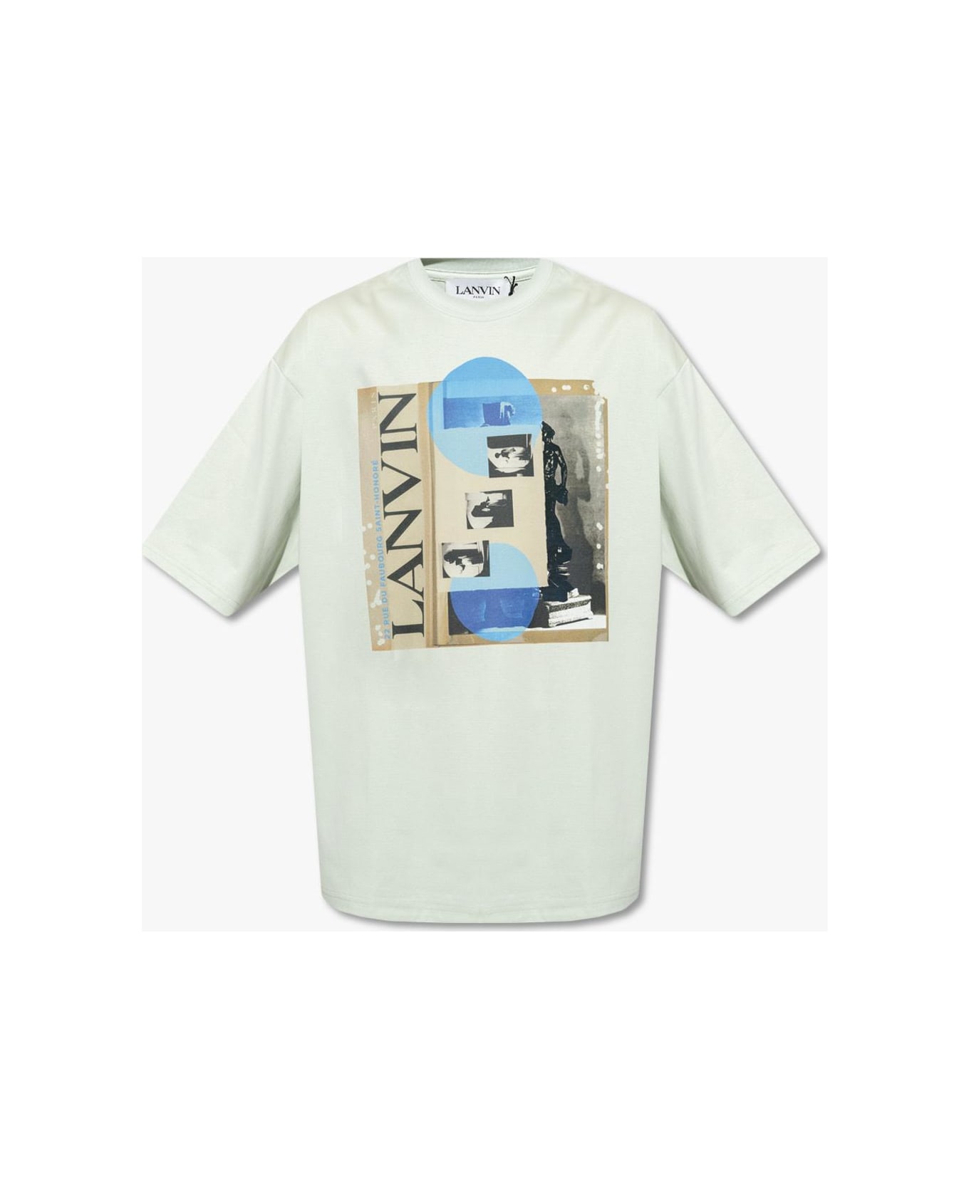 Light green crewneck T-shirt from Lanvin. Made of cotton, this style features short sleeves and a colourful logo print on the front. Composition: 100% Cotton