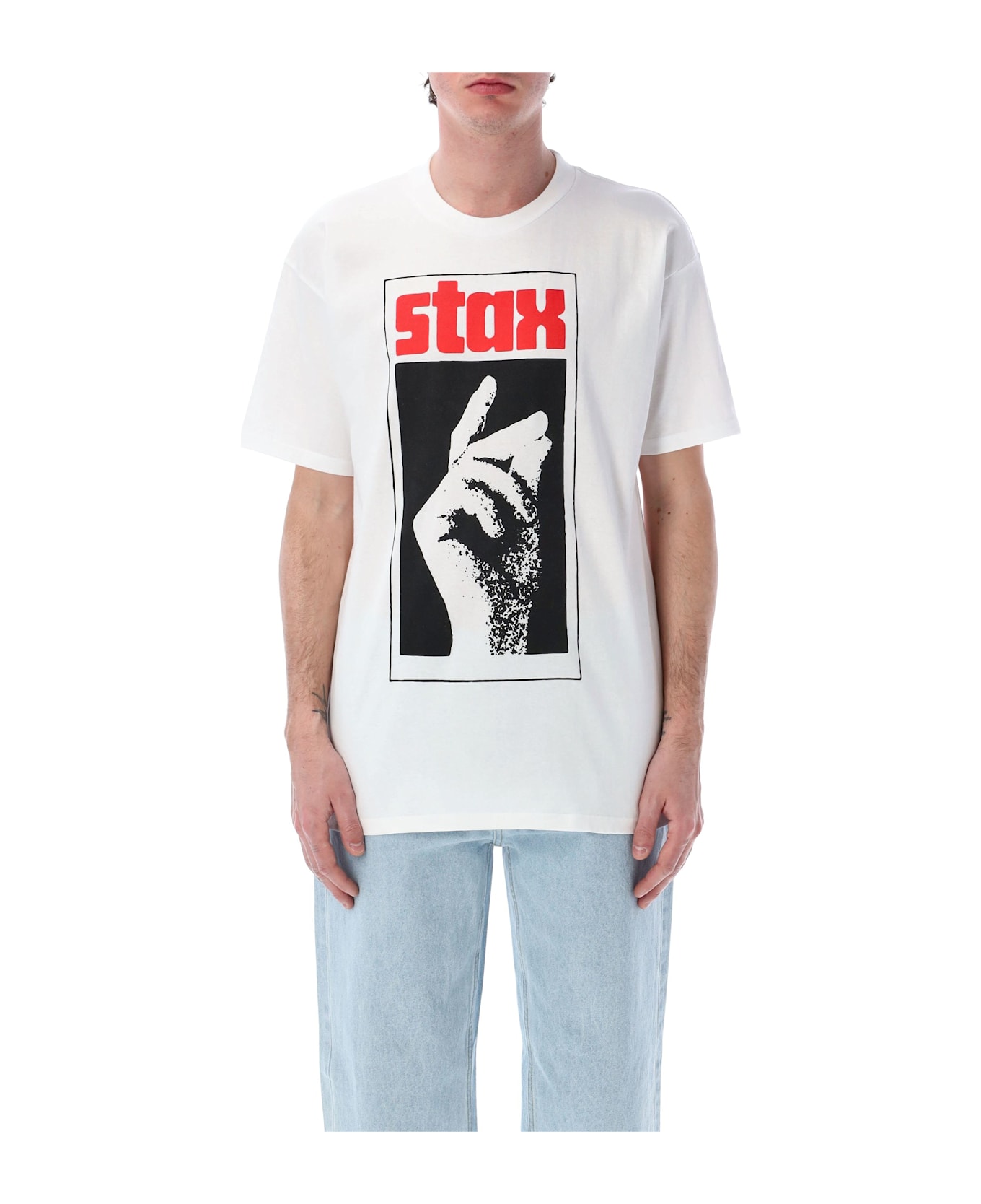 Cotton Snap T-shirt By Huf X Stax. Featuring: Ribbed Crew Neck Short Sleeves Printed Artwork At Front Huf Print At Back Huf Woven Label At Interior Neck Model Is 1,90 M And Wears Size L